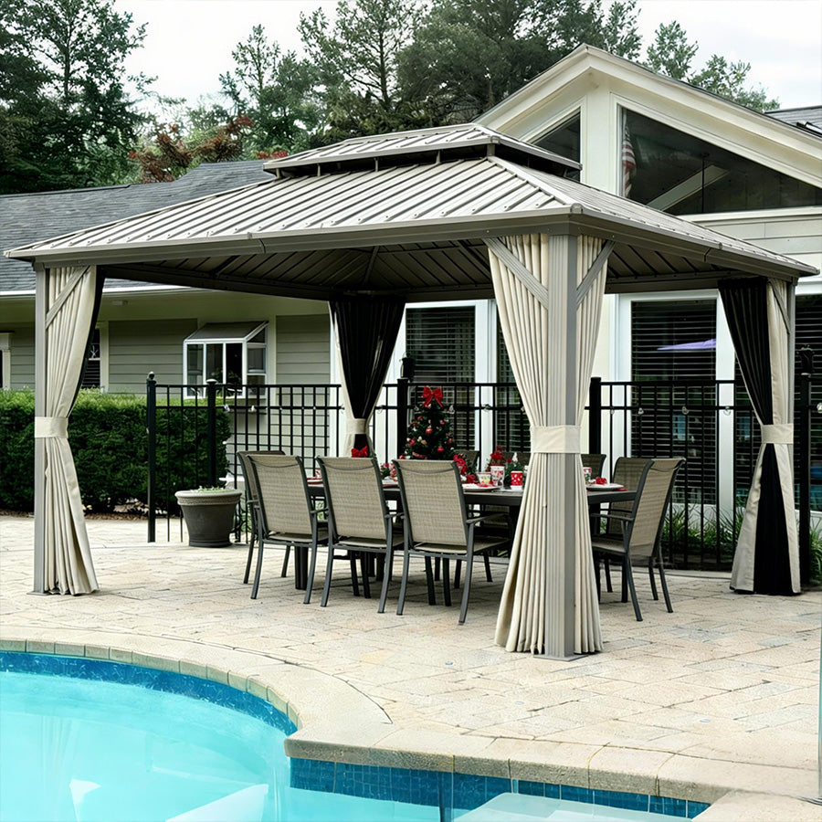 - [ Durable Aluminum Frame ] The sturdy, powder-coated aluminum frame is built to withstand outdoor conditions, providing long-lasting support and stability for your gazebo.