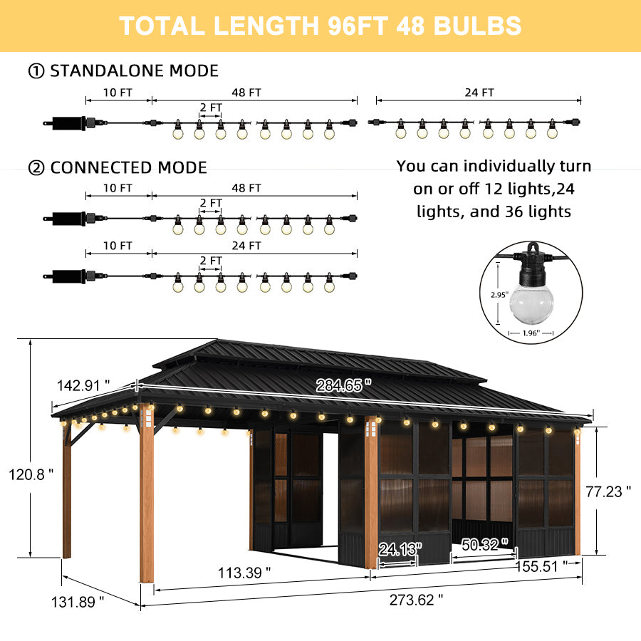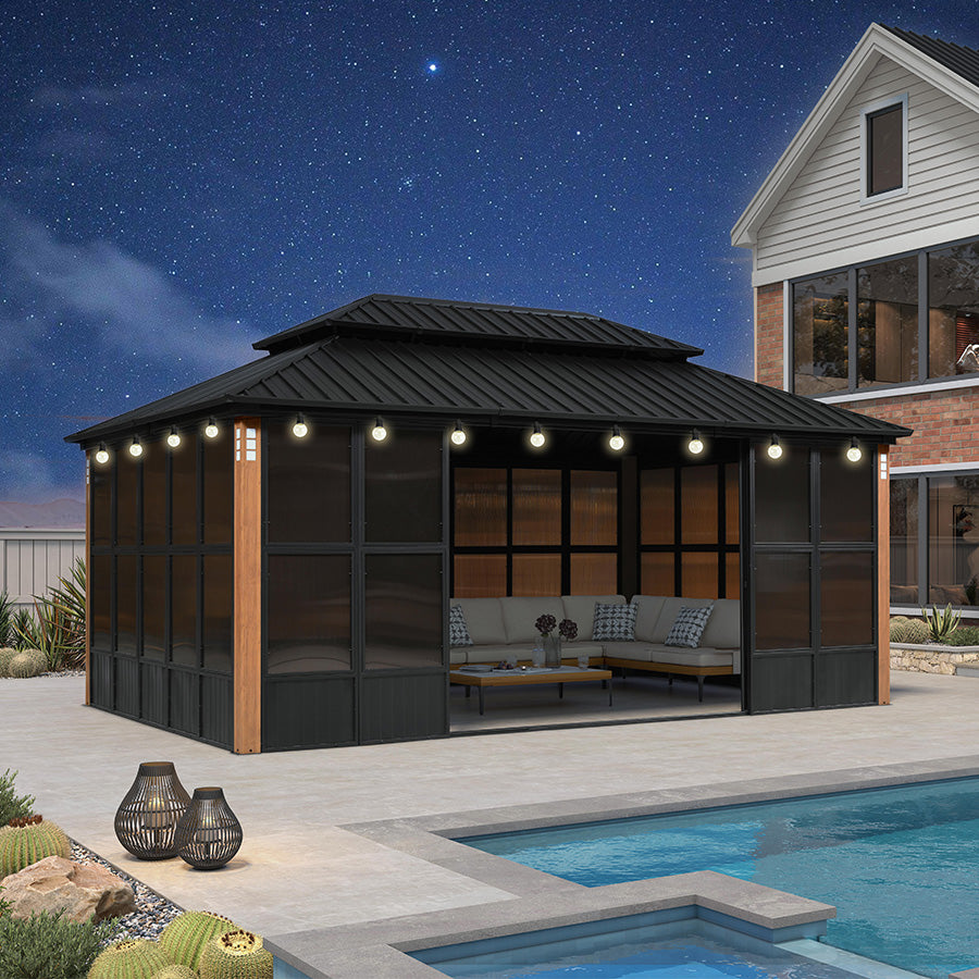 - [ Double Top Design ] The roof is double top vented for optimum airflow and comfort. Galvanized steel roofs make the gazebo rust and weather-resistant.