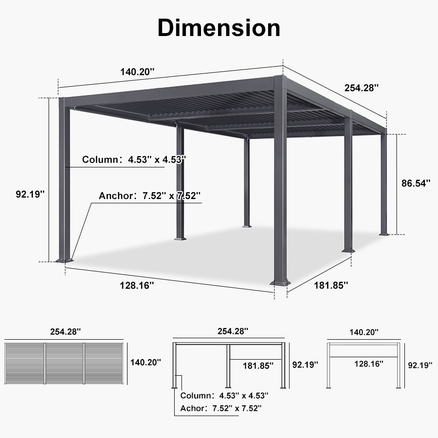 · Independent Adjustable Roof: With two rows of individually controlled louvered roofs, you can enjoy up to 120-310 square feet of shade while still being able to bask in the sun or gaze at the stars with this patio pergola.