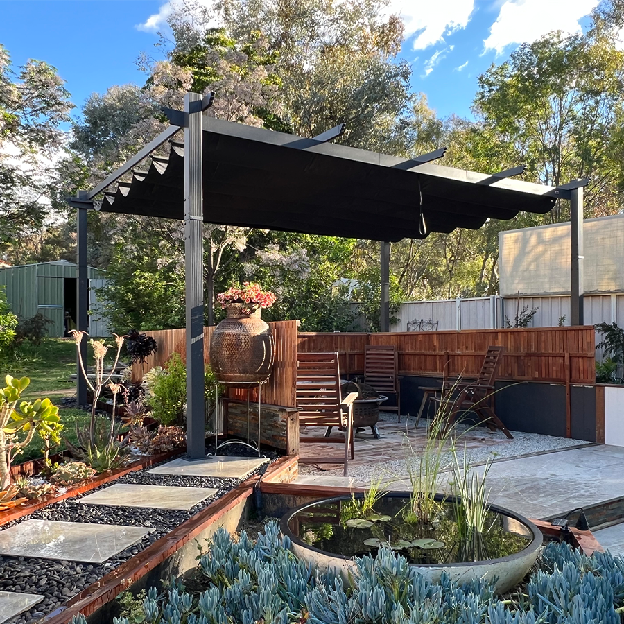 PURPLE LEAF Outdoor Pergola with Retractable Canopy Aluminum Shelter for Porch Garden Beach Shade Pavilion Pergola Modern Backyard Deck