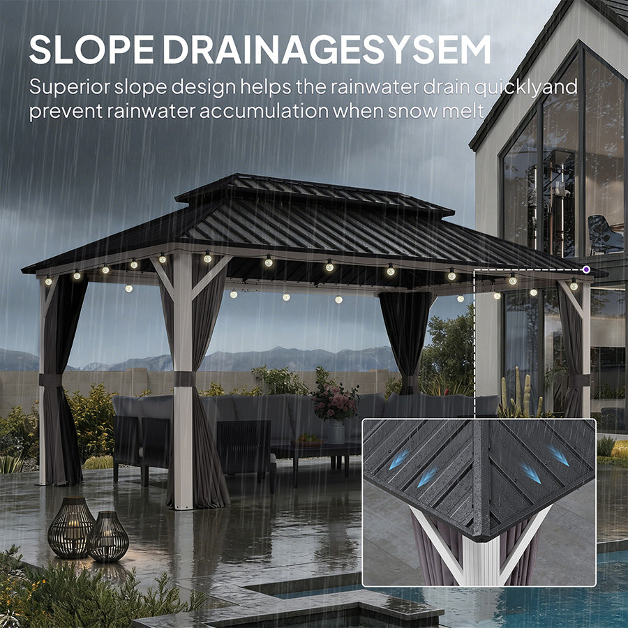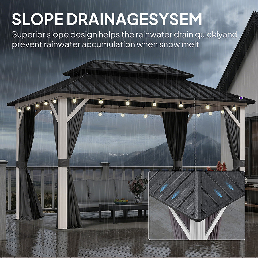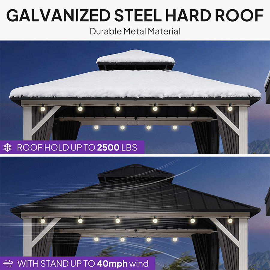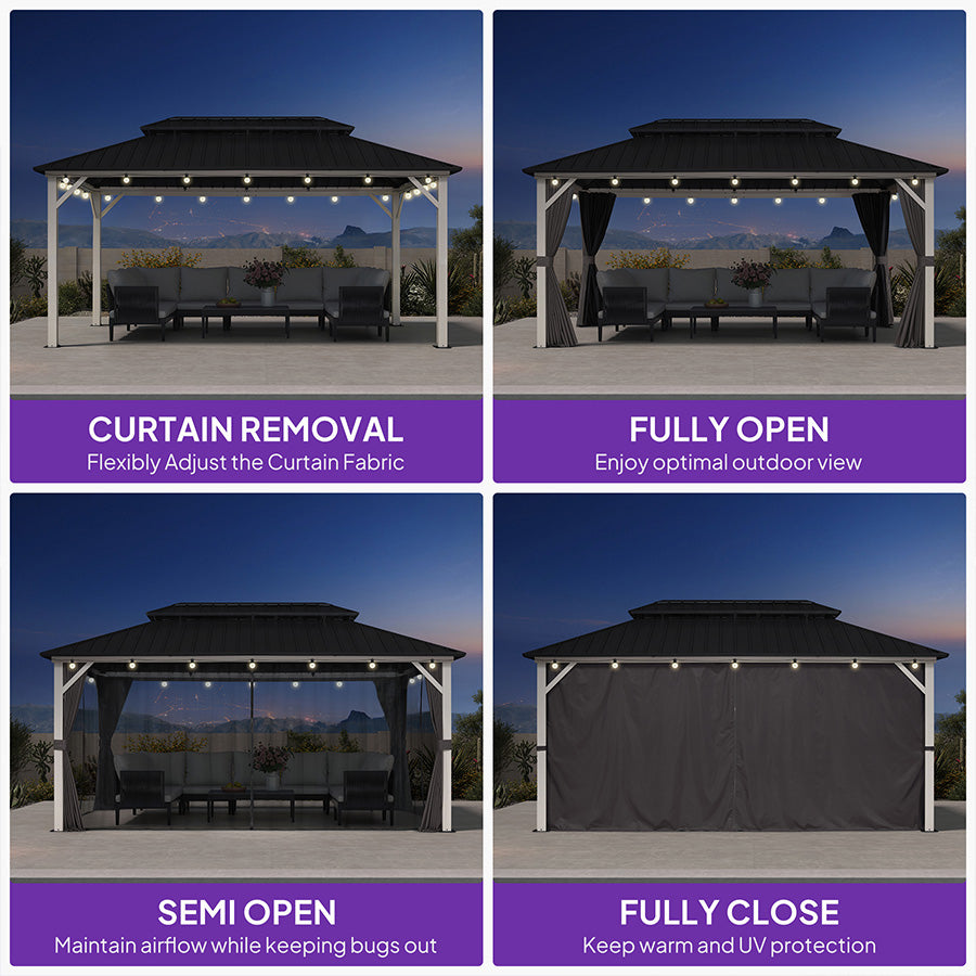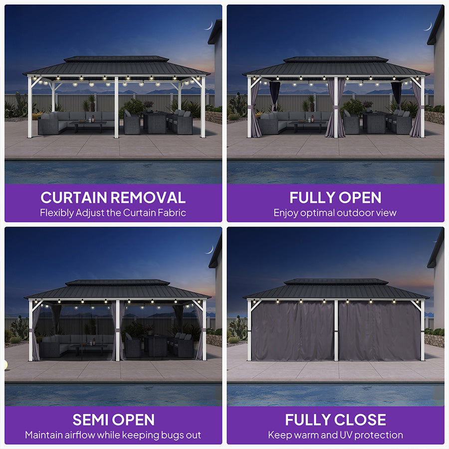 • [ Powder-coated Aluminum Frame ] Hardtop gazebo is constructed with a sturdy and lightweight aluminum framework, providing exceptional strength and durability. Make sure the gazebo is suitable for long-term outdoor use.