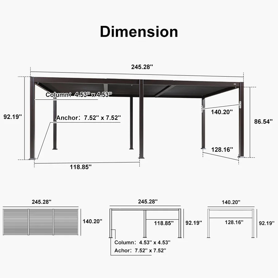 Customizable Comfort: Experience ultimate relaxation with our pergola's three rows of individually adjustable louvers, offering up to 234 square feet of shaded paradise. Whether you're seeking sunlight or stargazing, find your perfect ambiance with ease.