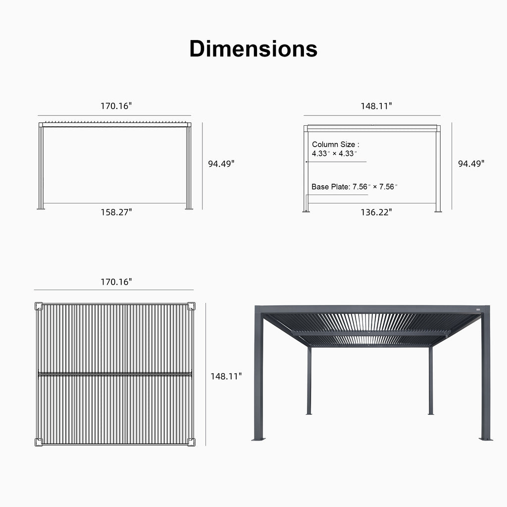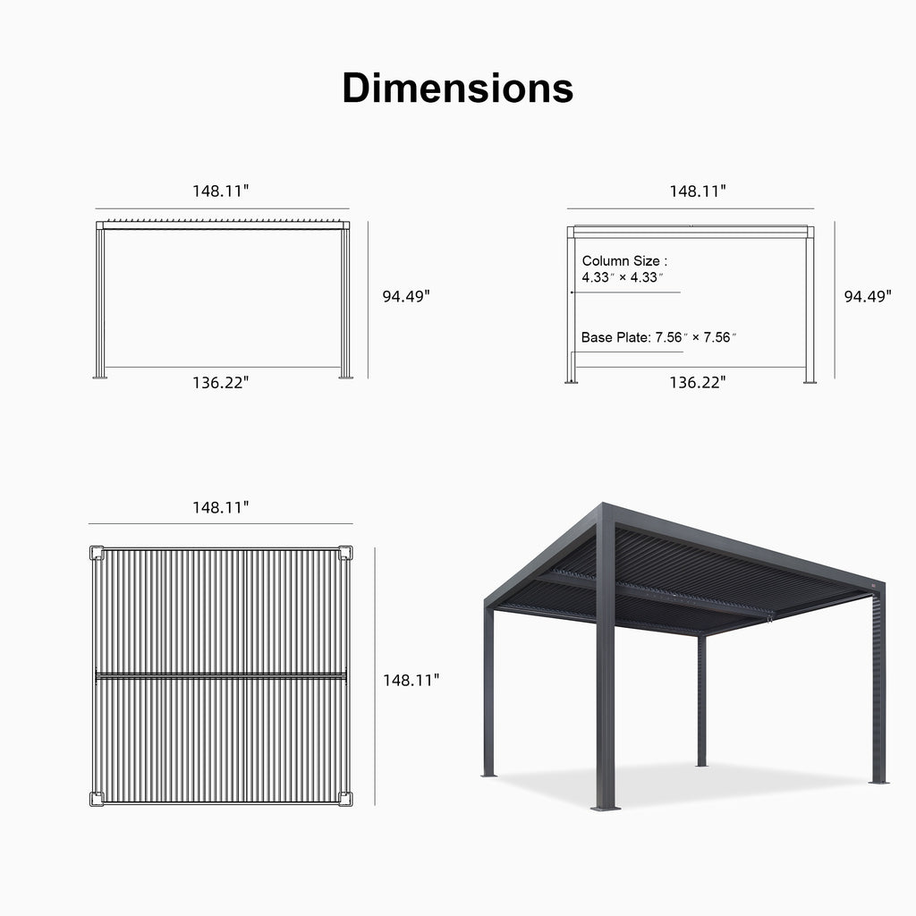 💜 Noted: In the case of high winds, snow or other extreme weather conditions, please open the louvers and raise or remove any shade screen accessories that have been installed to avoid potential damage to your pergola.