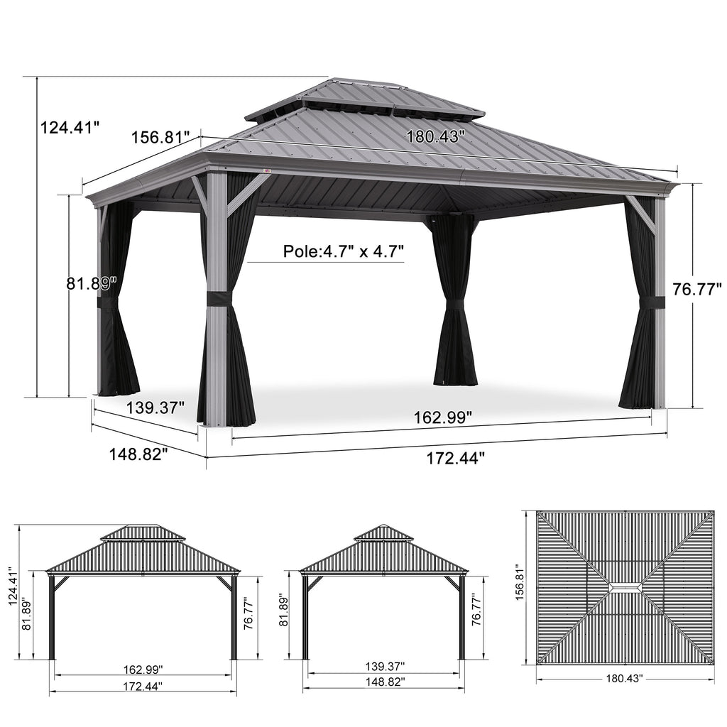 - [ Galvanized steel roof ] The hardtop gazebo is made of high-quality, sturdy steel that can withstand strong winds and heavy snowfall.