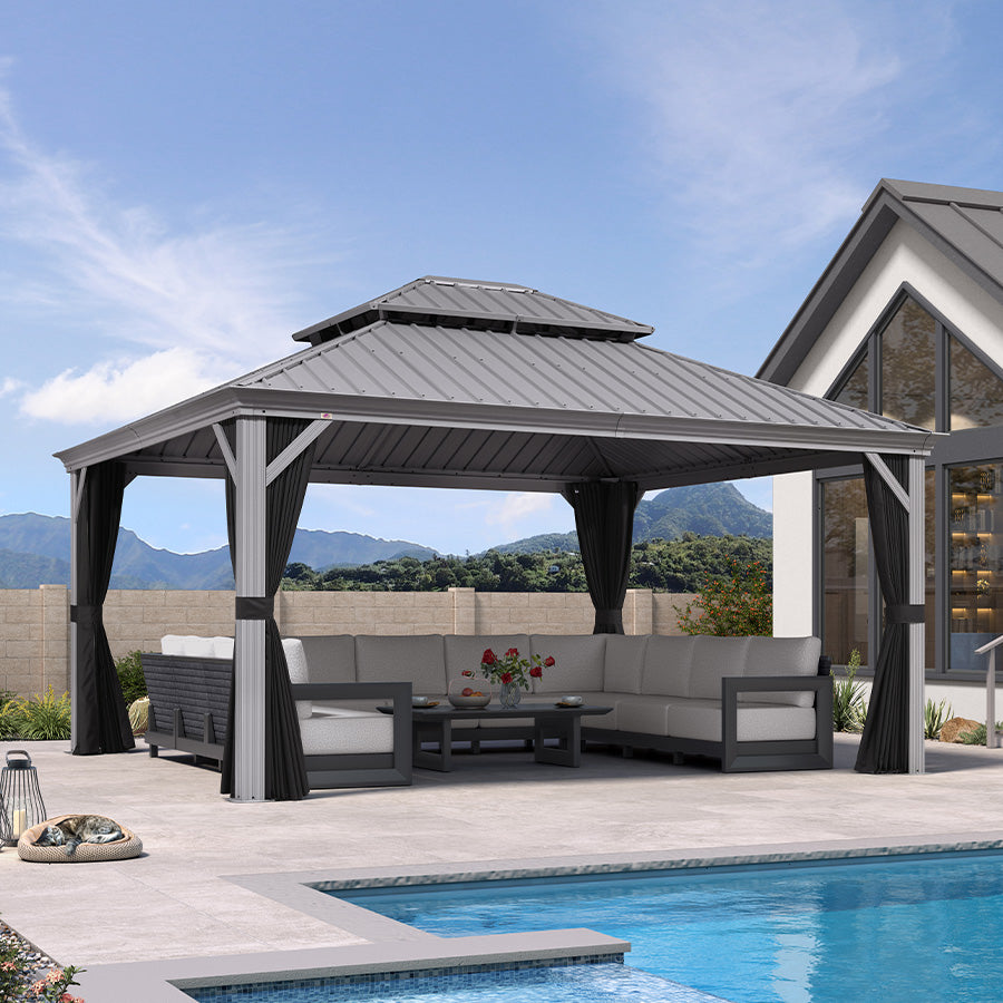 - [ Netting and Curtain ] Our permanent gazebo features a dual-track design with zippered double-layer protection. It repels mosquitoes and shields from strong sunlight.