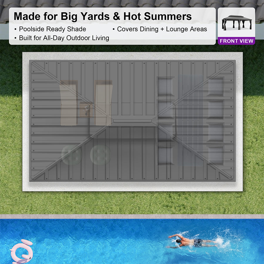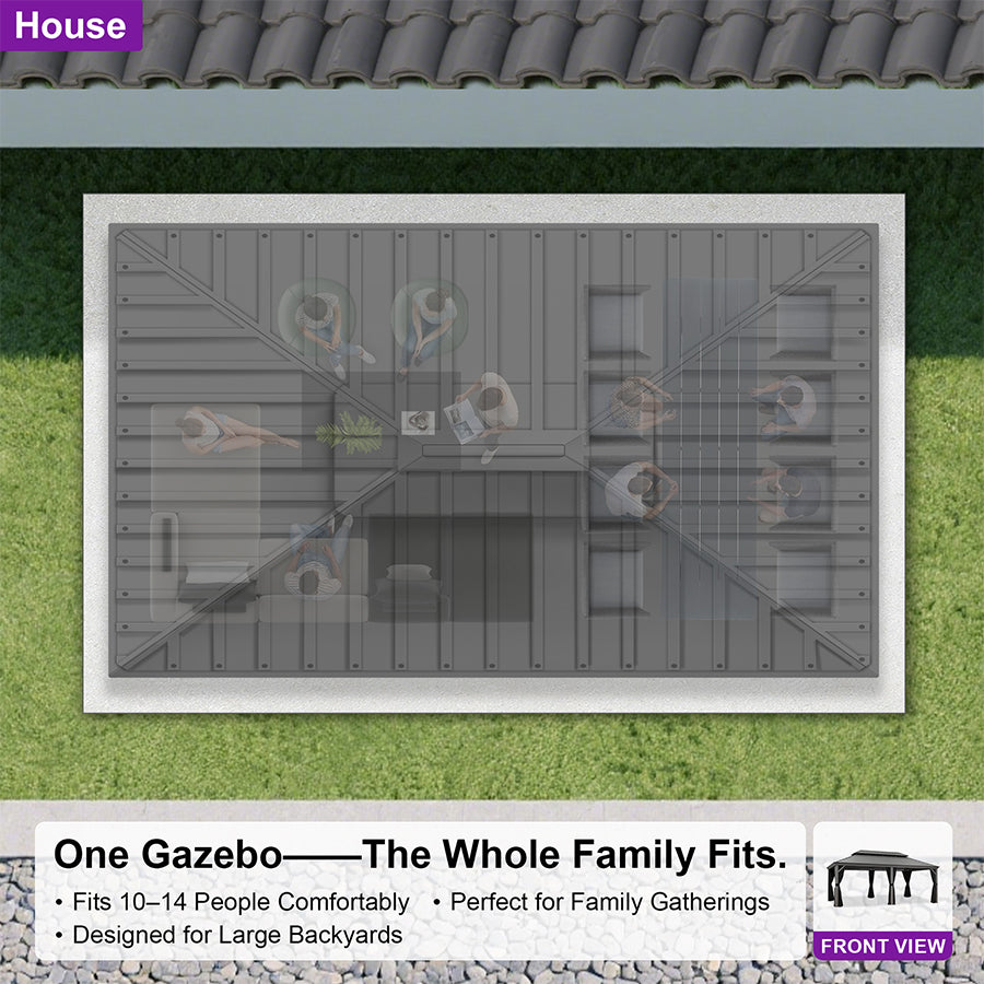 • [ Galvanized steel roof ] The hardtop gazebo is made of high-quality, sturdy steel that can withstand strong winds and heavy snowfall.
