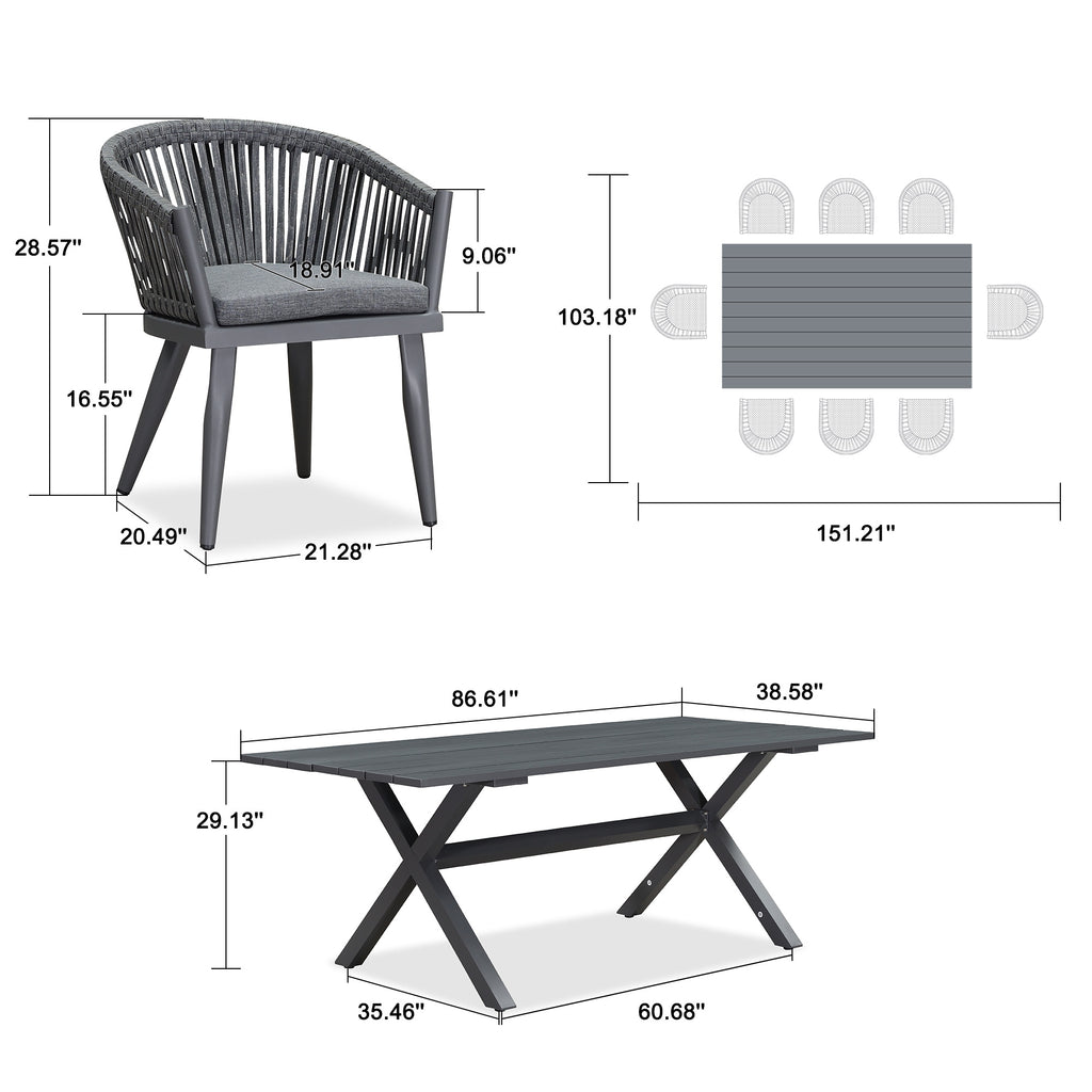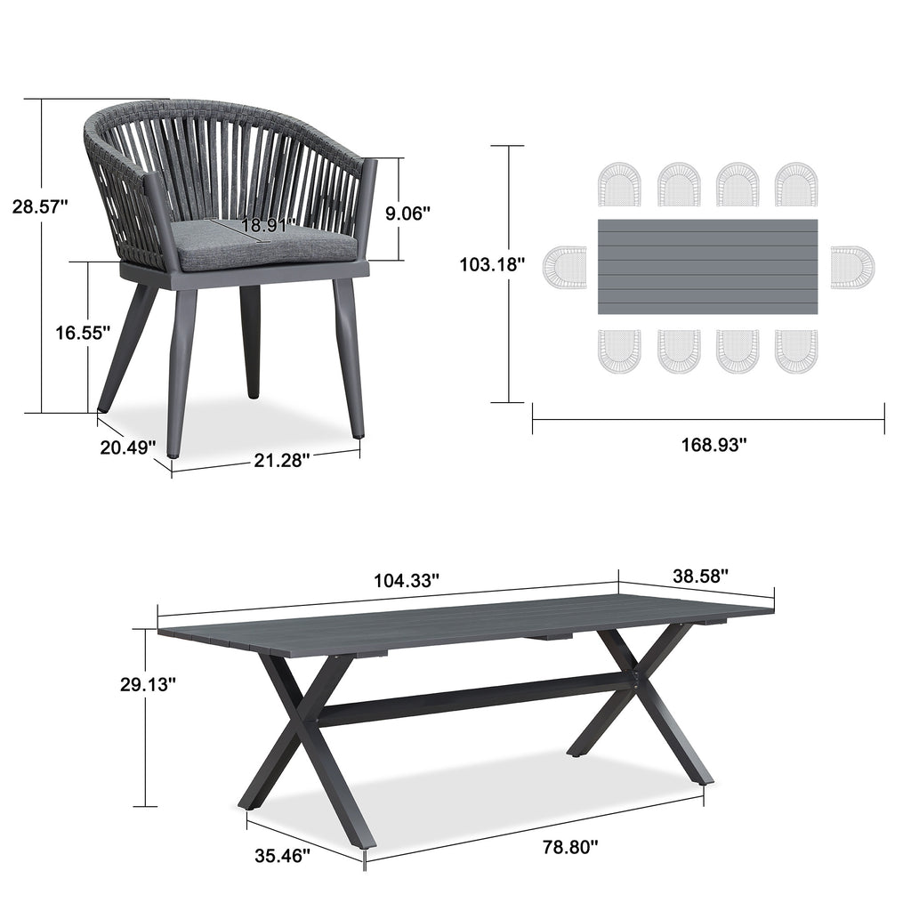 PURPLE LEAF 7/9/11 Pieces Outdoor Dining Set with Aluminium Patio Furniture Table and Rattan Chairs Sets for Deck, Backyard and Indoor, Grey