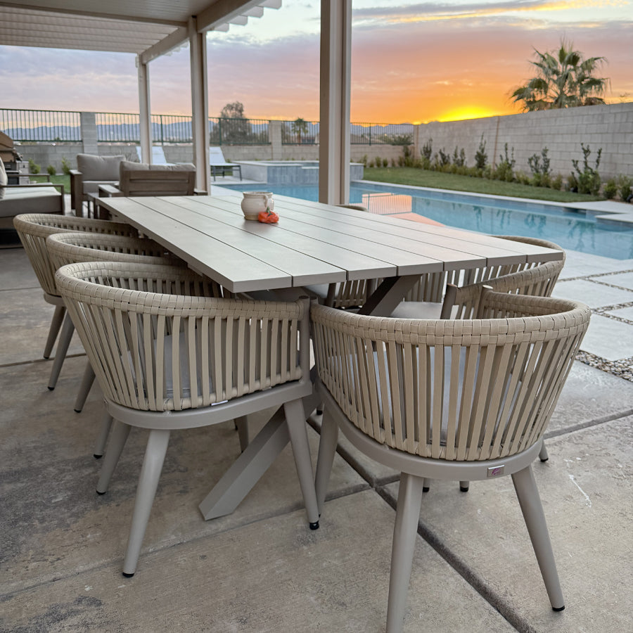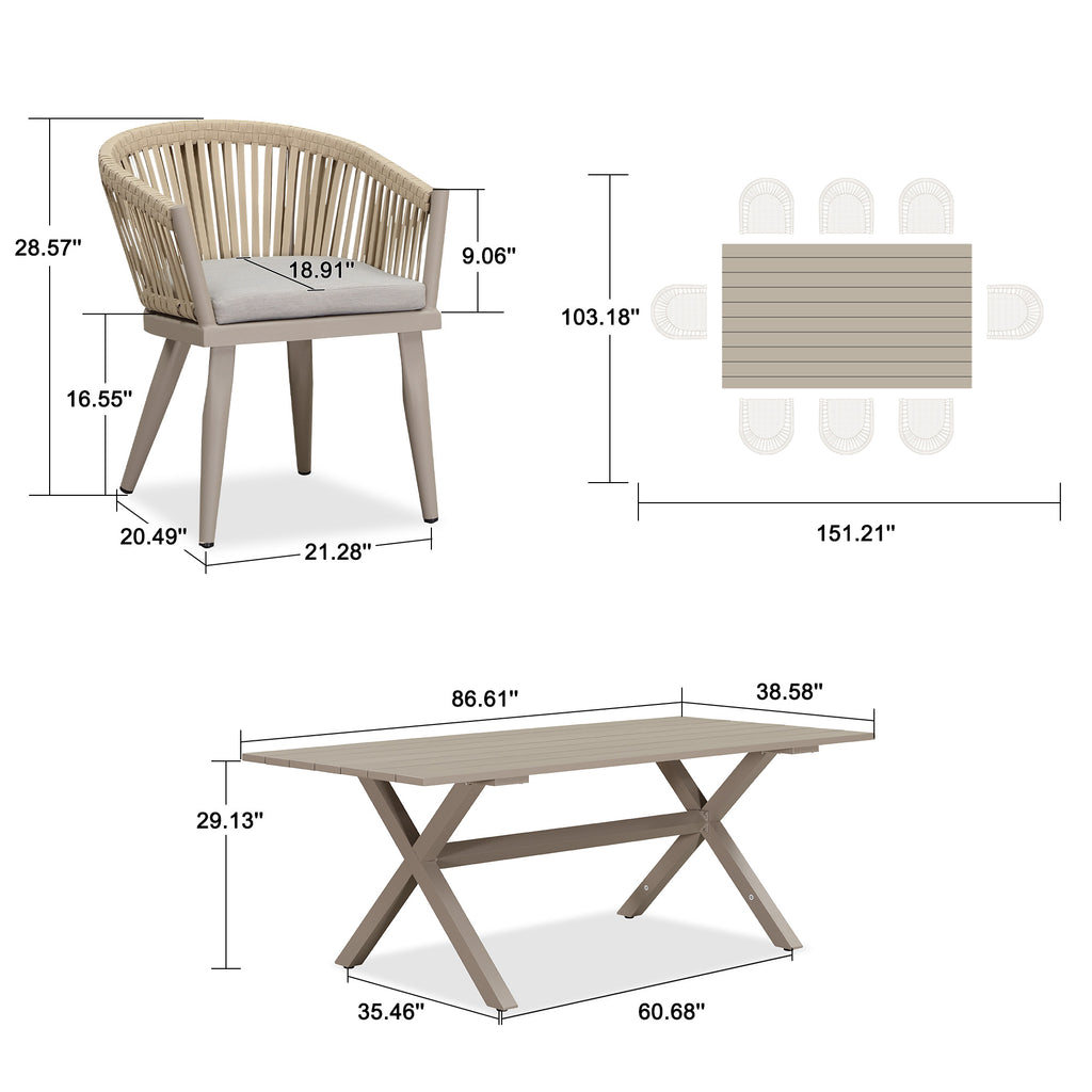 [ Sturdy Aluminum Frame ] With an aluminum frame, this outdoor dining set provides exceptional stability and durability. The lightweight yet robust design ensures that the set remains solid and reliable for years to come.