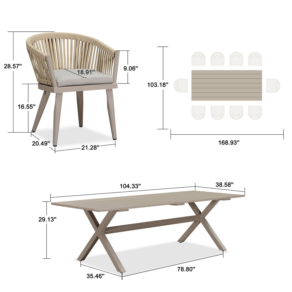 PURPLE LEAF 7/9/11 Pieces Outdoor Dining Set Aluminum Table & Wicker Rattan Chairs Modern Patio Furniture Set for Deck, Champagne
