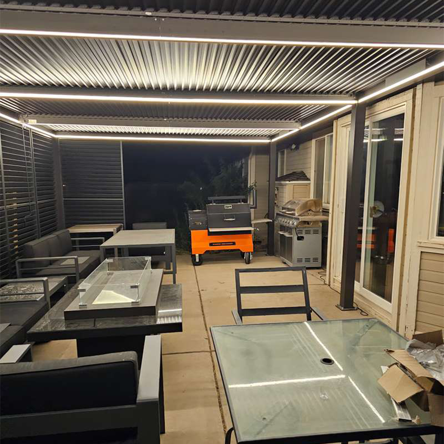 Noted:In the case of high winds, snow or other extreme weather conditions, please open the louvers and raise or remove any shade screen accessories that have been installed to avoid potential damage to your pergola.