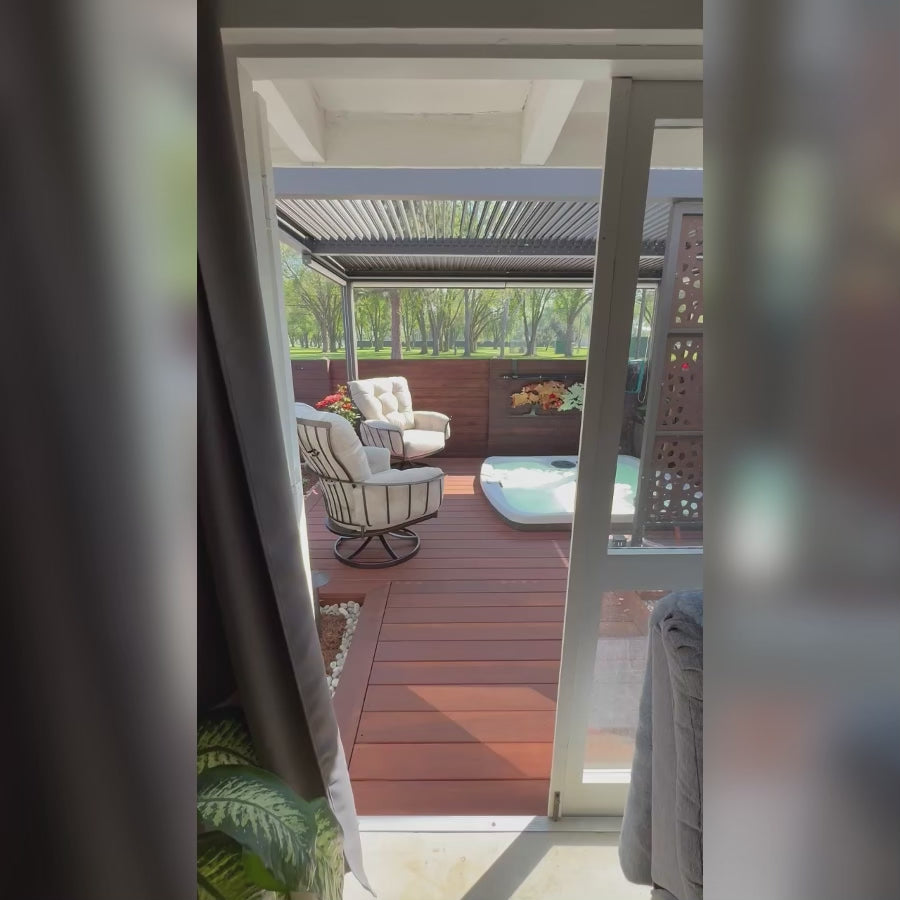 ● Independent Adjustable Aluminum Louvered Roo: Designed with independent adjustable roofs, equipped with adjustable poles that allow you to adjust it effortlessly from 0° to 90°, offering multiple protection options against sun, rain, and wind.