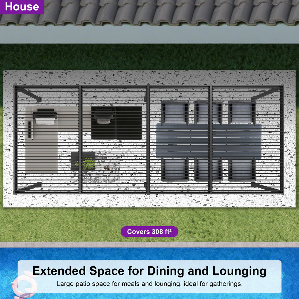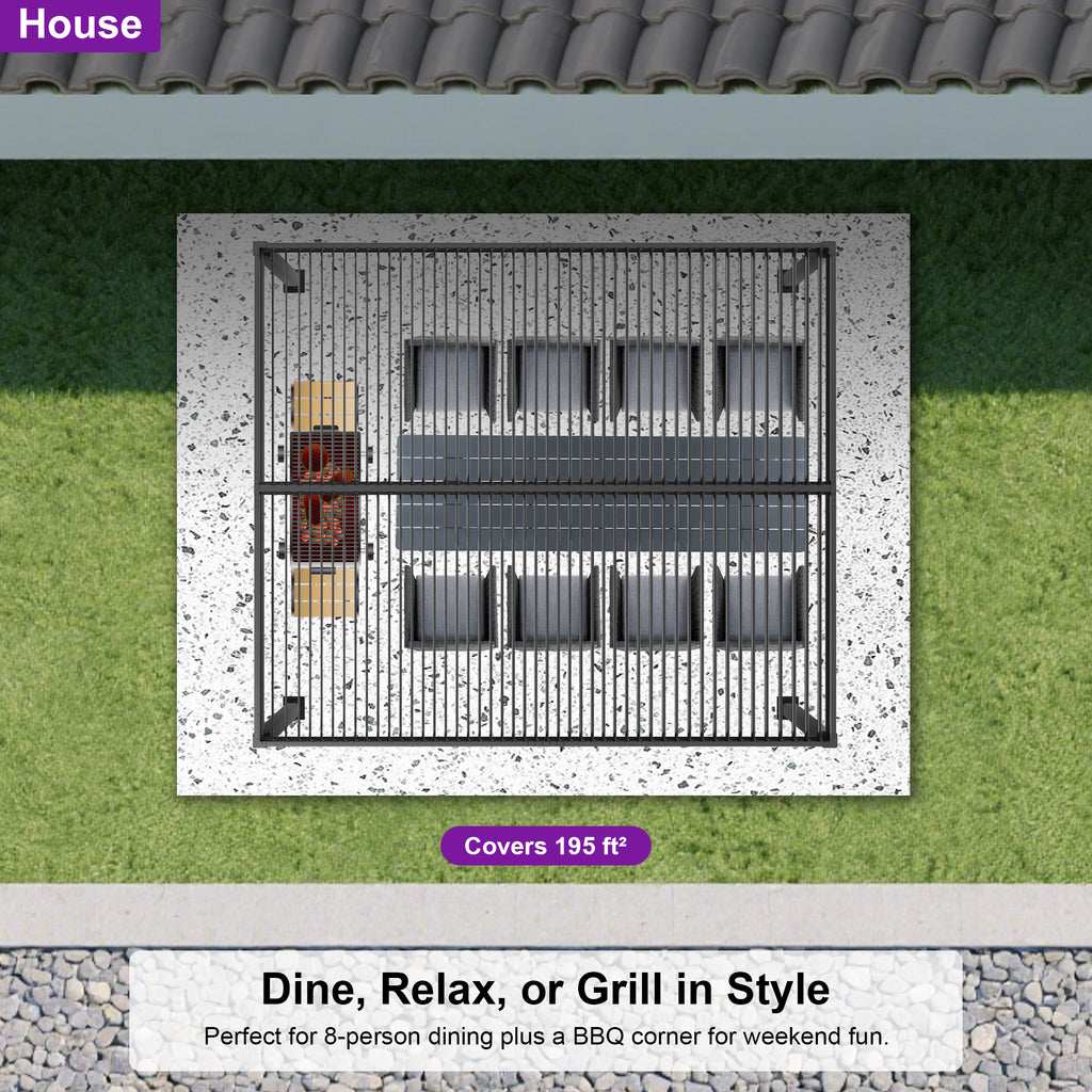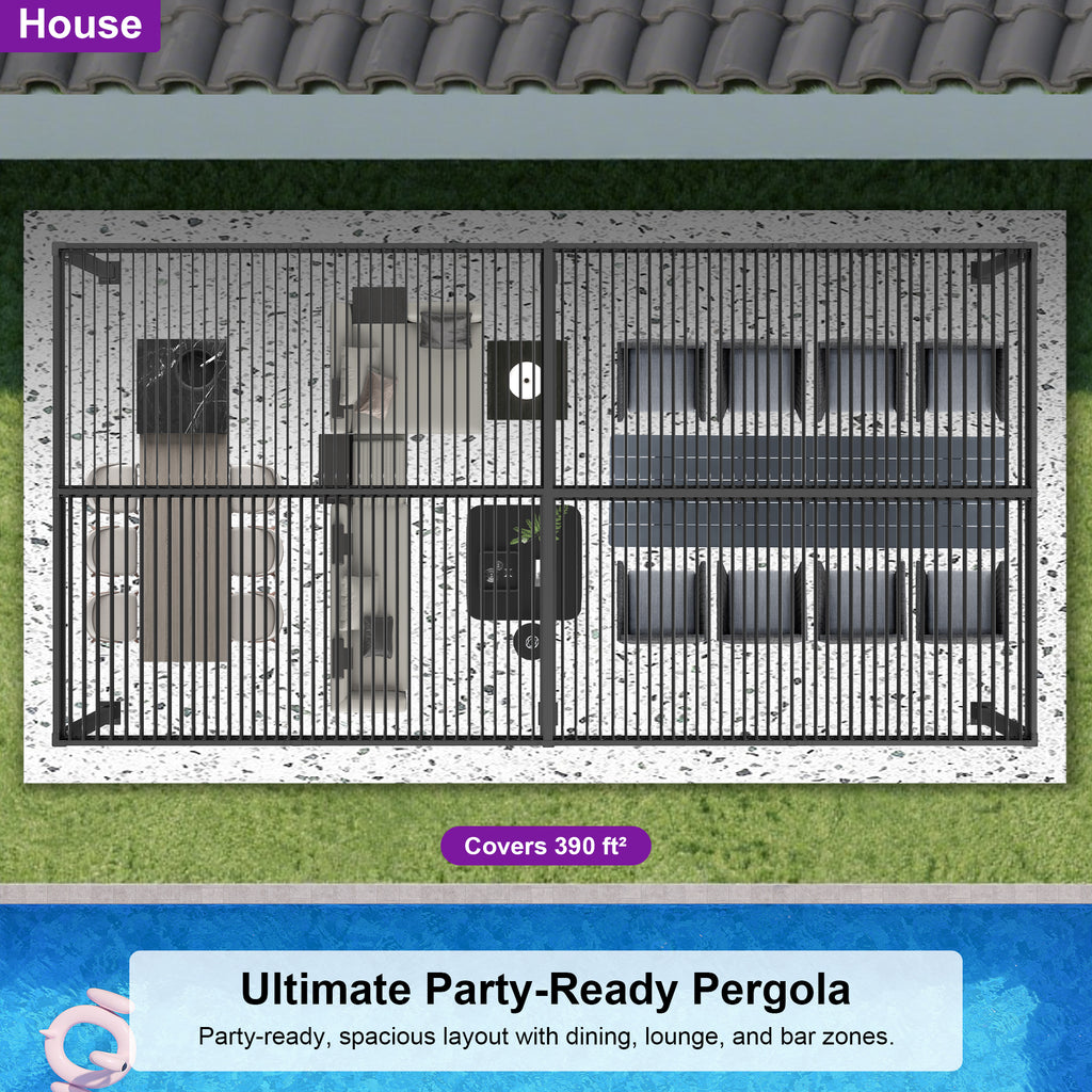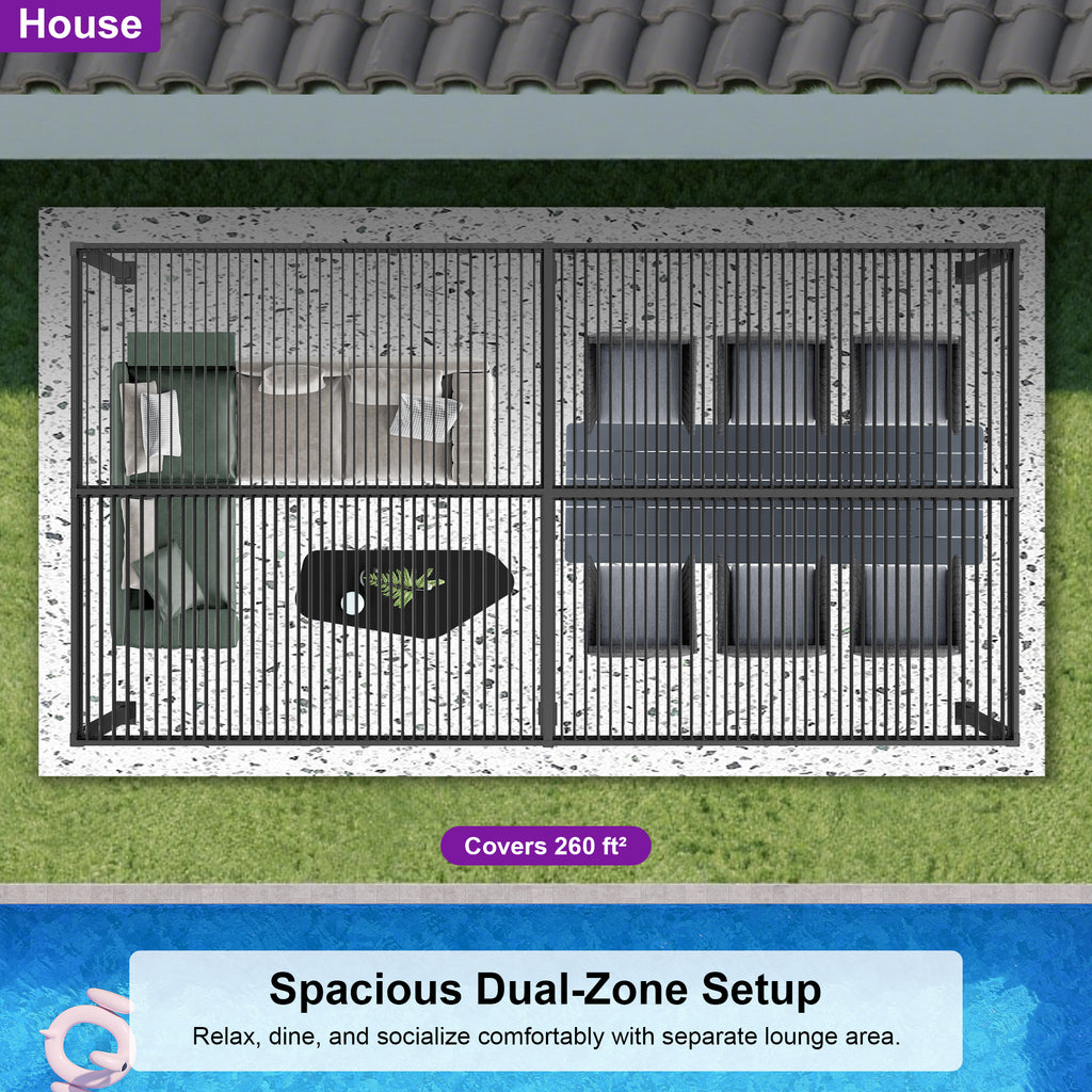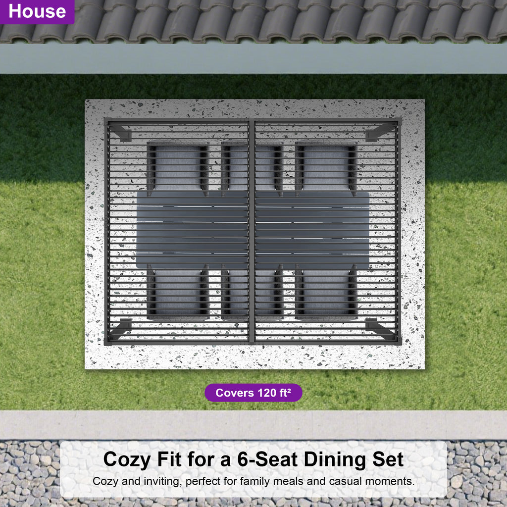 · Independent Adjustable Roof: With two rows of individually controlled louvered roofs, you can enjoy up to 120-310 square feet of shade while still being able to bask in the sun or gaze at the stars with this patio pergola.