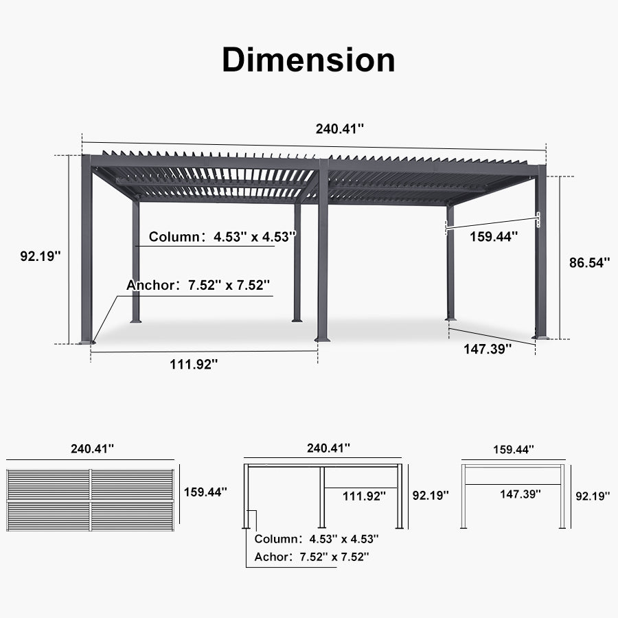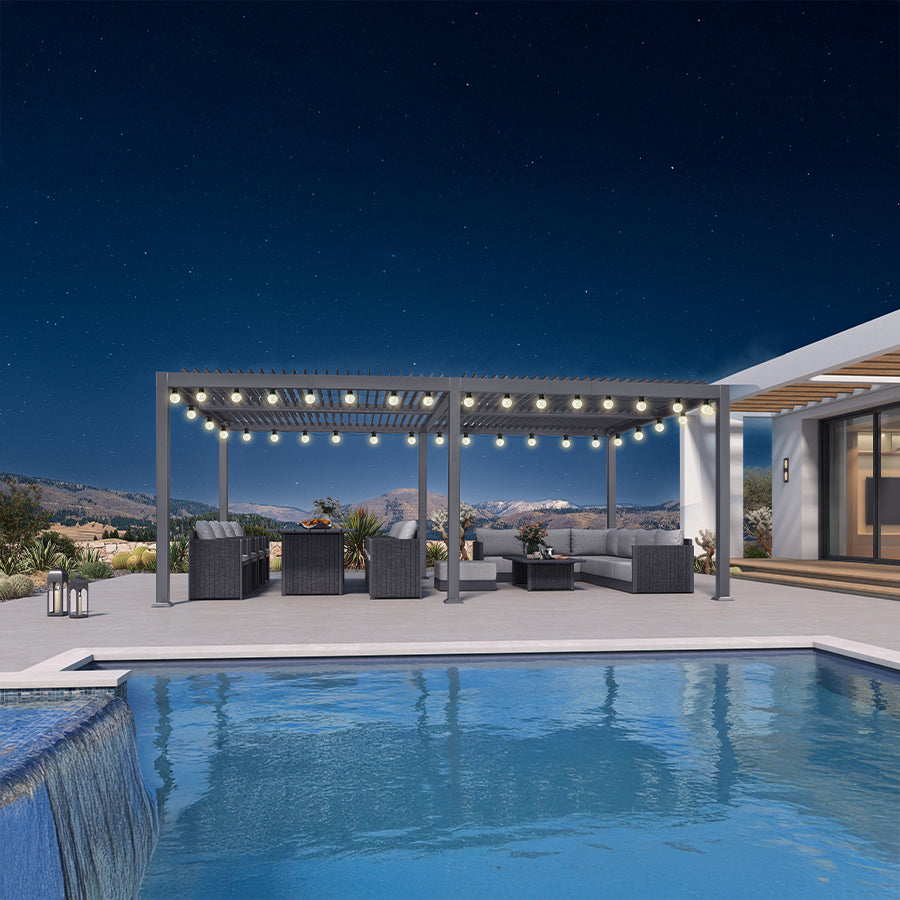 · Independent Adjustable Roof: With two rows of individually controlled louvered roofs, you can enjoy up to 120-310 square feet of shade while still being able to bask in the sun or gaze at the stars with this patio pergola.