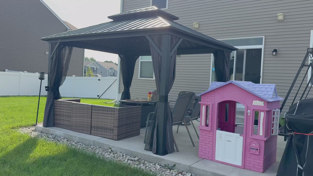 - [ Powder-coated Aluminum Frame ] Hardtop gazebo is constructed with a sturdy and lightweight aluminum framework, providing exceptional strength and durability. Make sure the gazebo is suitable for long-term outdoor use.