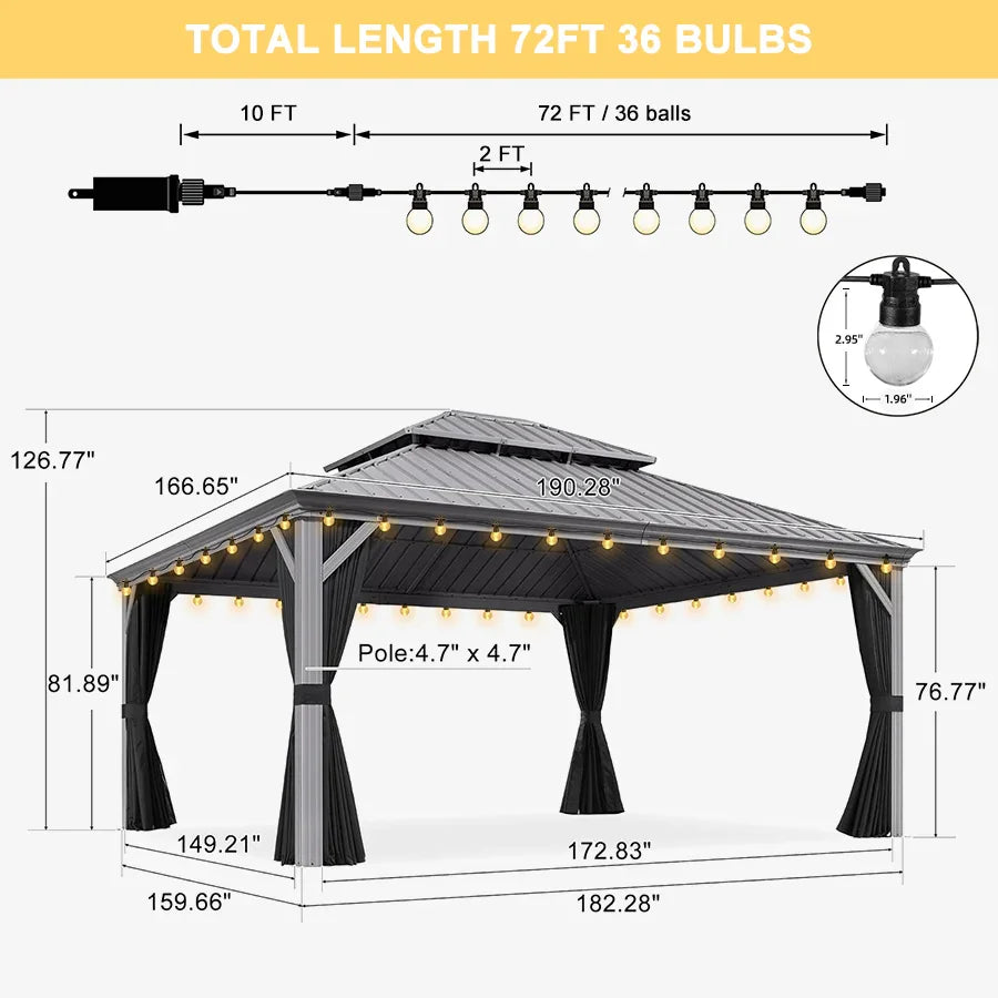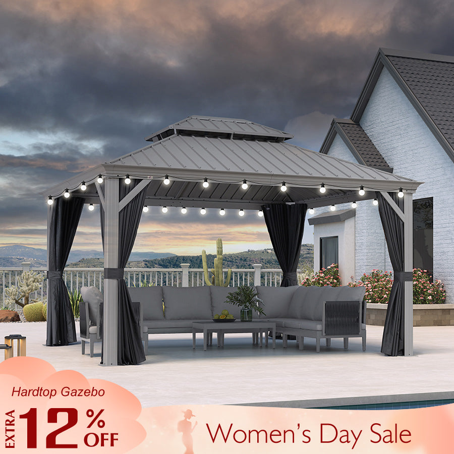 - [ Galvanized steel roof ] The hardtop gazebo is made of high-quality, sturdy steel that can withstand strong winds and heavy snowfall.