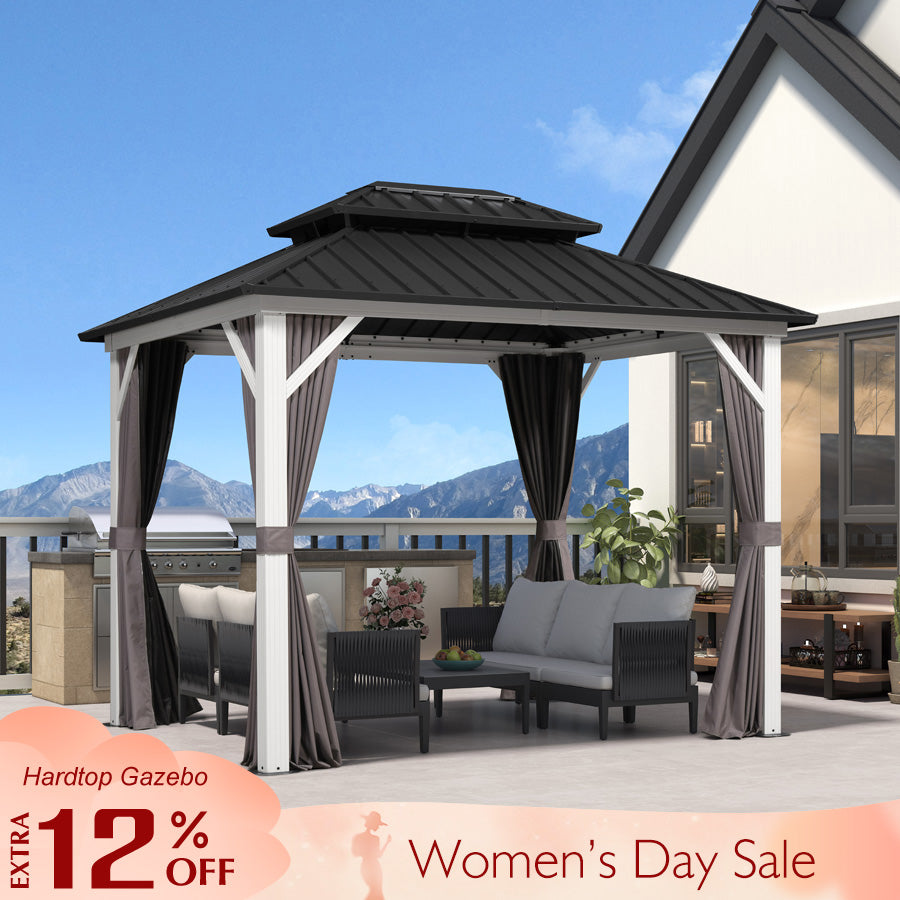 • [ Powder-coated Aluminum Frame ] Hardtop gazebo is constructed with a sturdy and lightweight aluminum framework, providing exceptional strength and durability. Make sure the gazebo is suitable for long-term outdoor use.