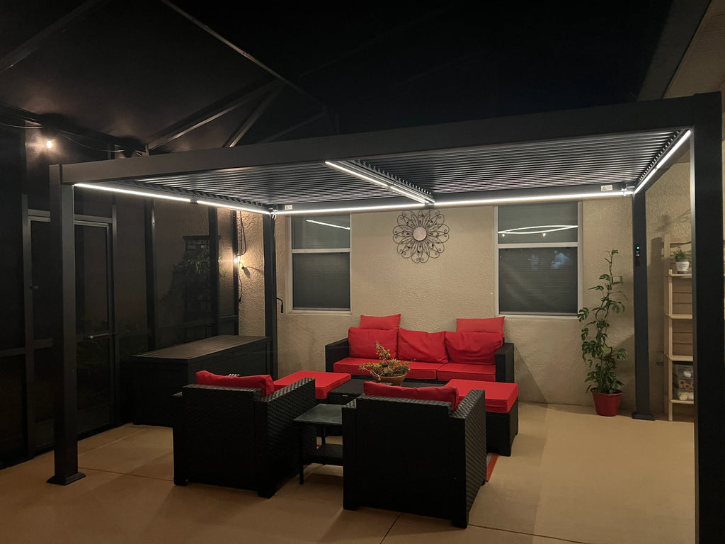 💜 Noted: In the case of high winds, snow or other extreme weather conditions, please open the louvers and raise or remove any shade screen accessories that have been installed to avoid potential damage to your pergola.