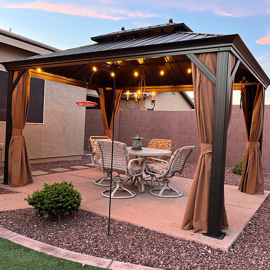 • [ Strong Resistant ] Fade-resistant and rust-resistant galvanized steel top, keeps out bright light and harmful UV rays, makes this hardtop gazebo strong enough to withhold heavy snow.