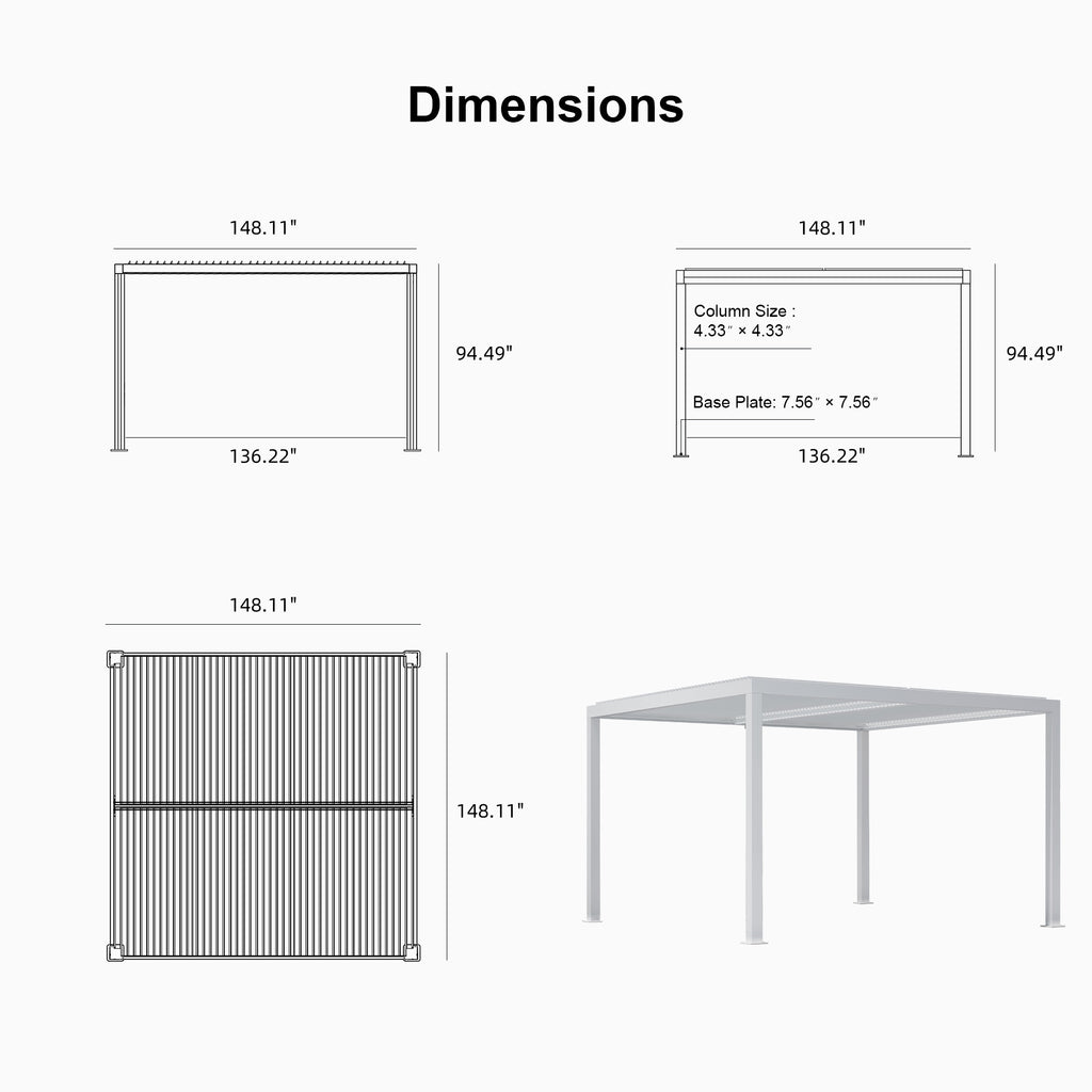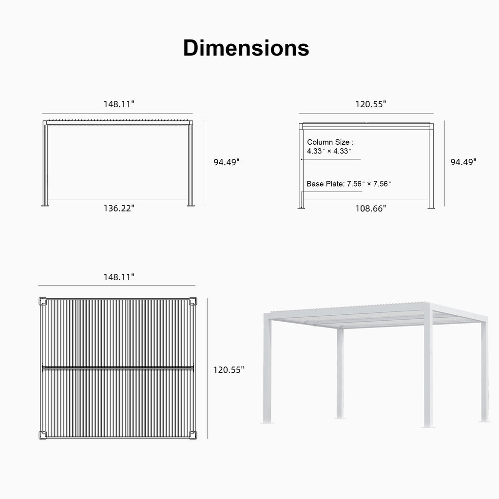 Heavy-Duty Material: The Aluminum Pergola is made with premium powder-coated aluminum, featuring a column thickness of 1.5mm to resist rusting, peeling and fading.