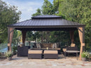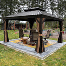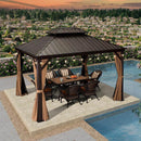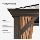 - [ Strong Resistant ] Fade-resistant and rust-resistant galvanized steel top, keeps out bright light and harmful UV rays, makes this hardtop gazebo strong enough to withhold heavy snow.