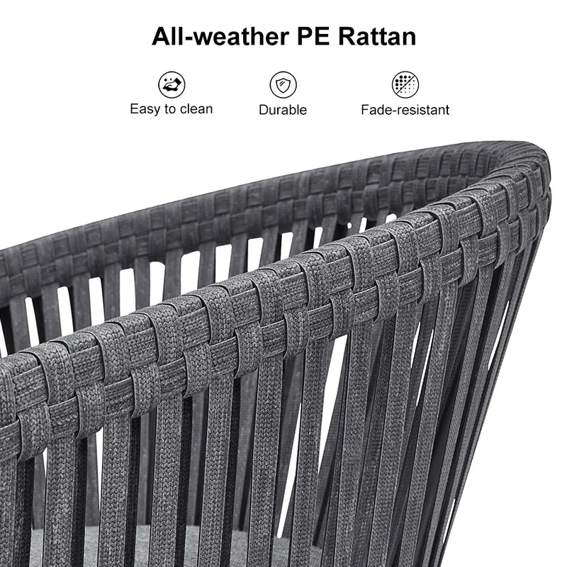 [ Modern Design ] The chairs are thoughtfully designed with an all-weather PE rattan backrest, providing both style and durability. And the X-structured table blend traditional craftsmanship with long-lasting support perfectly.