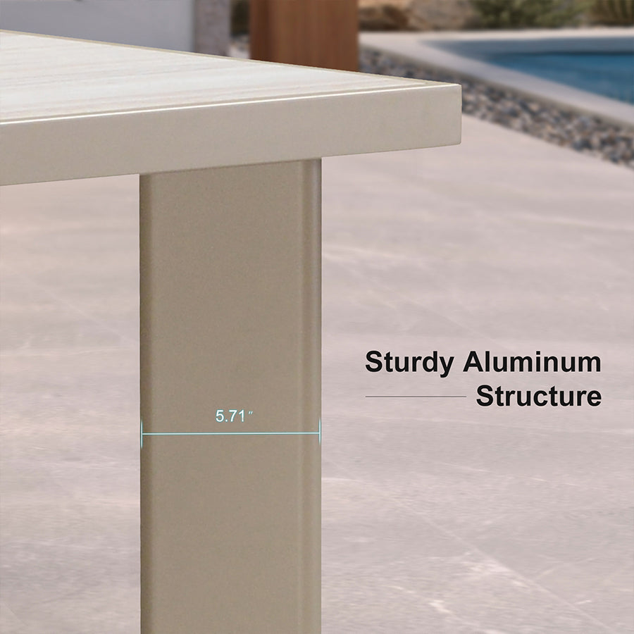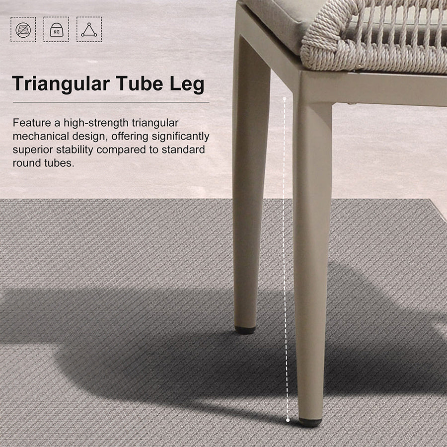 [ Sturdy Structure ] Constructed with a premium rust resistant powder coated aluminum frame. The dining set features thick table legs and triangular tube structured dining chairs, ensuring stability and durability.