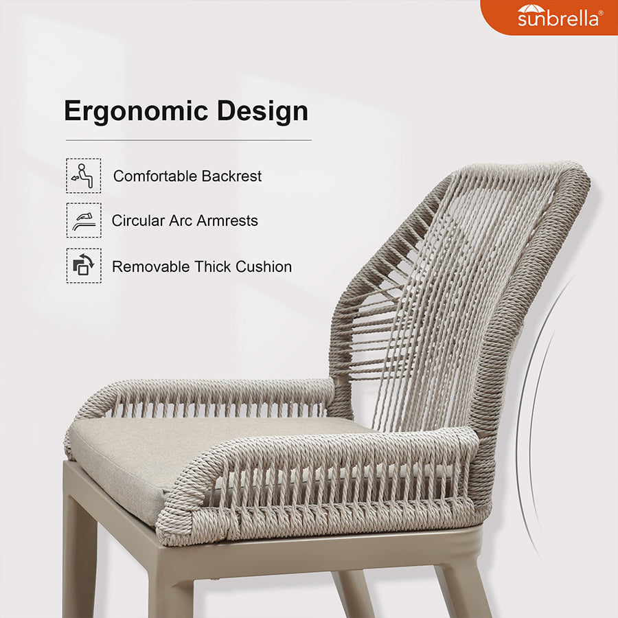 [ Ergonomic Design Seat ]The curved backrest fits the S-curve of the body closely, providing all-round support and protection. With handwoven textilene rope, firm and durable, beautiful shape, smooth lines, breathability and quick-drying.