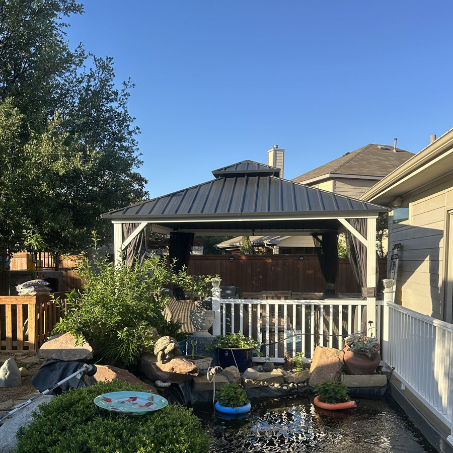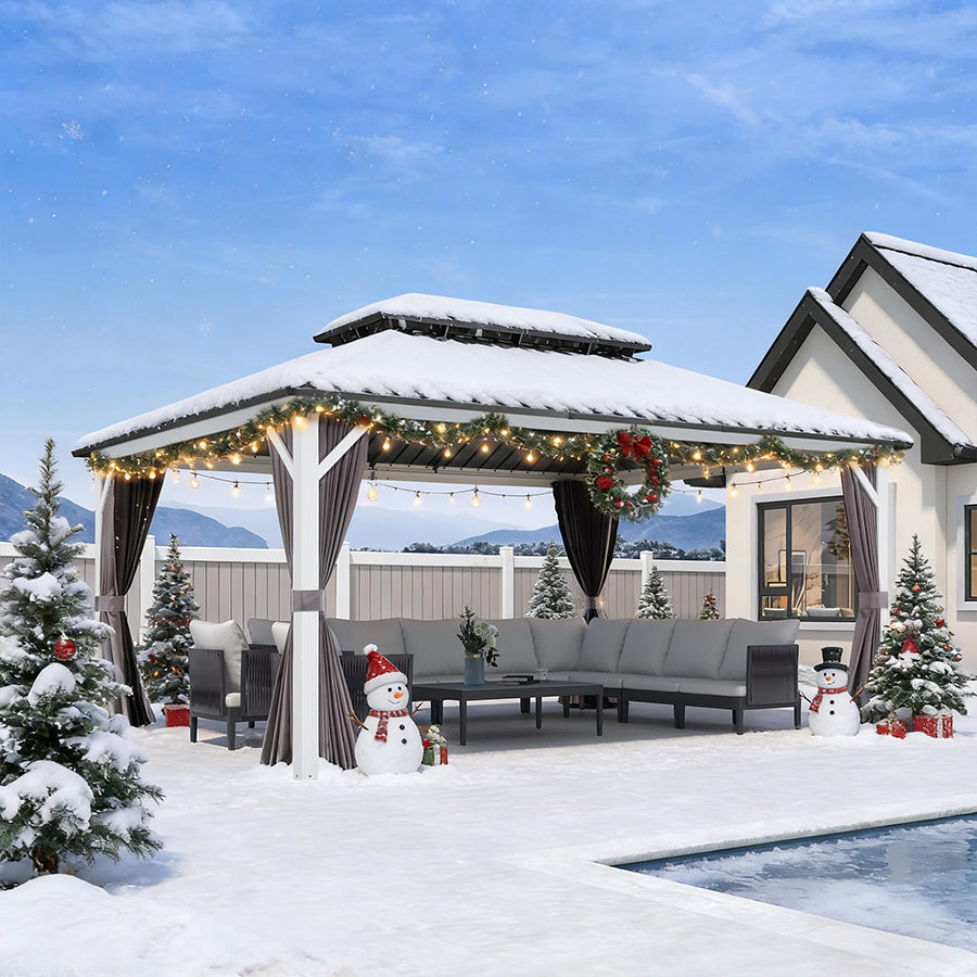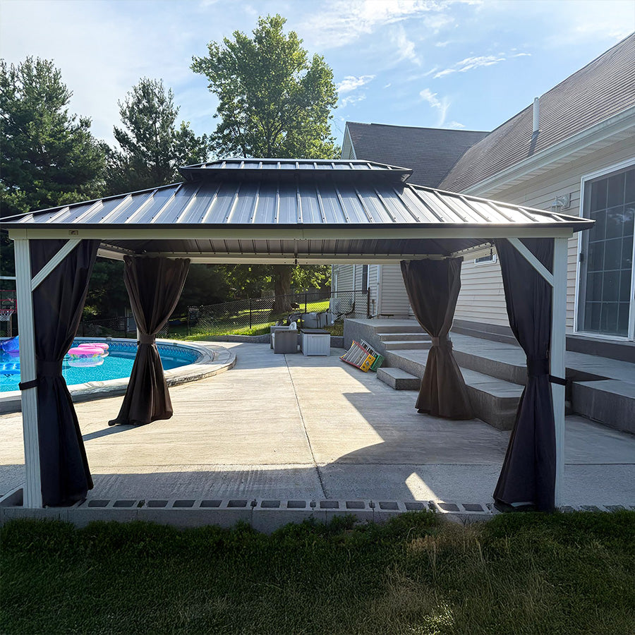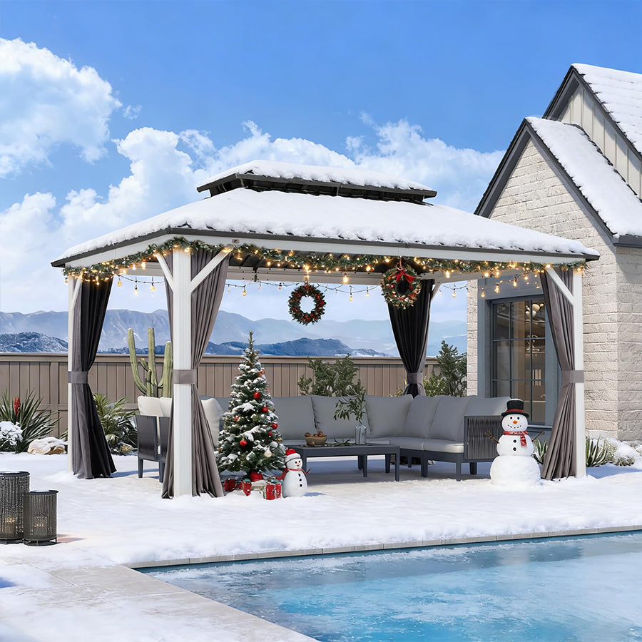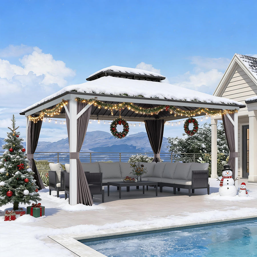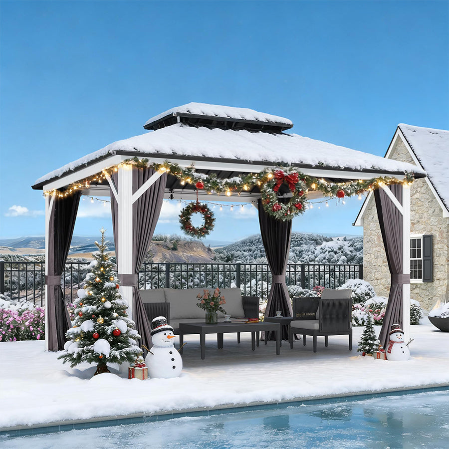- [ Powder-coated Aluminum Frame ] Hardtop gazebo is constructed with a sturdy and lightweight aluminum framework, providing exceptional strength and durability. Make sure the gazebo is suitable for long-term outdoor use.