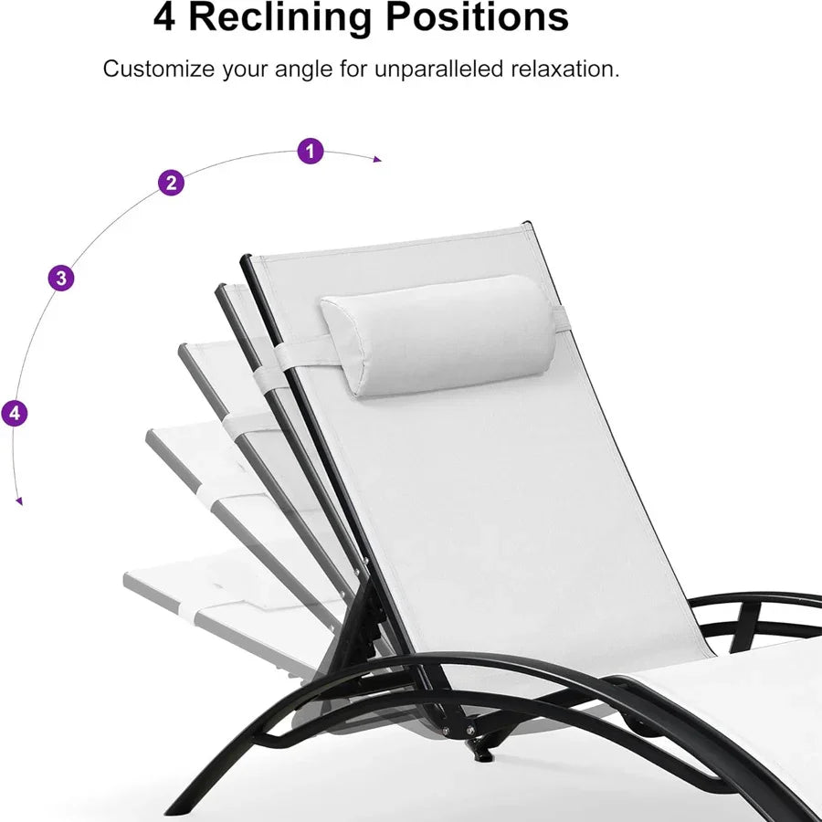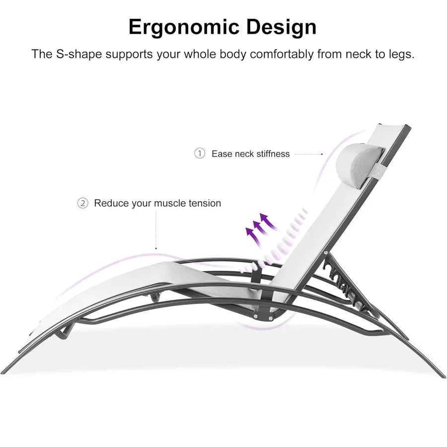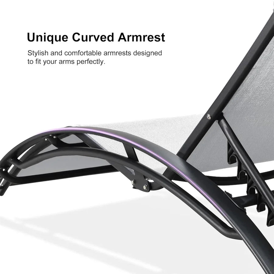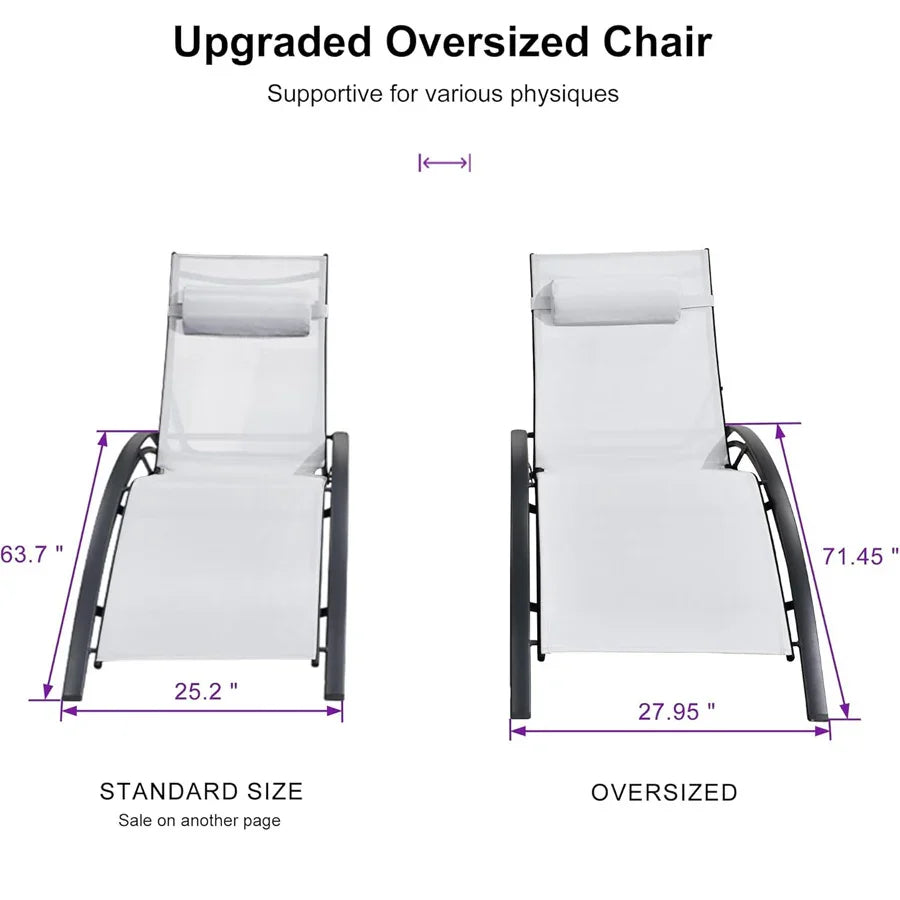 Sleek Design: The frame of the pool lounge chairs is made of high-quality aluminum alloy, which is rust-proof and corrosion-proof. The patio lounger is strictly ergonomically designed with a perfect curvature to hold up to 265 lbs, it is suitable for most adults.