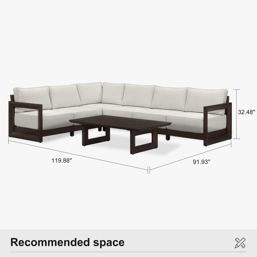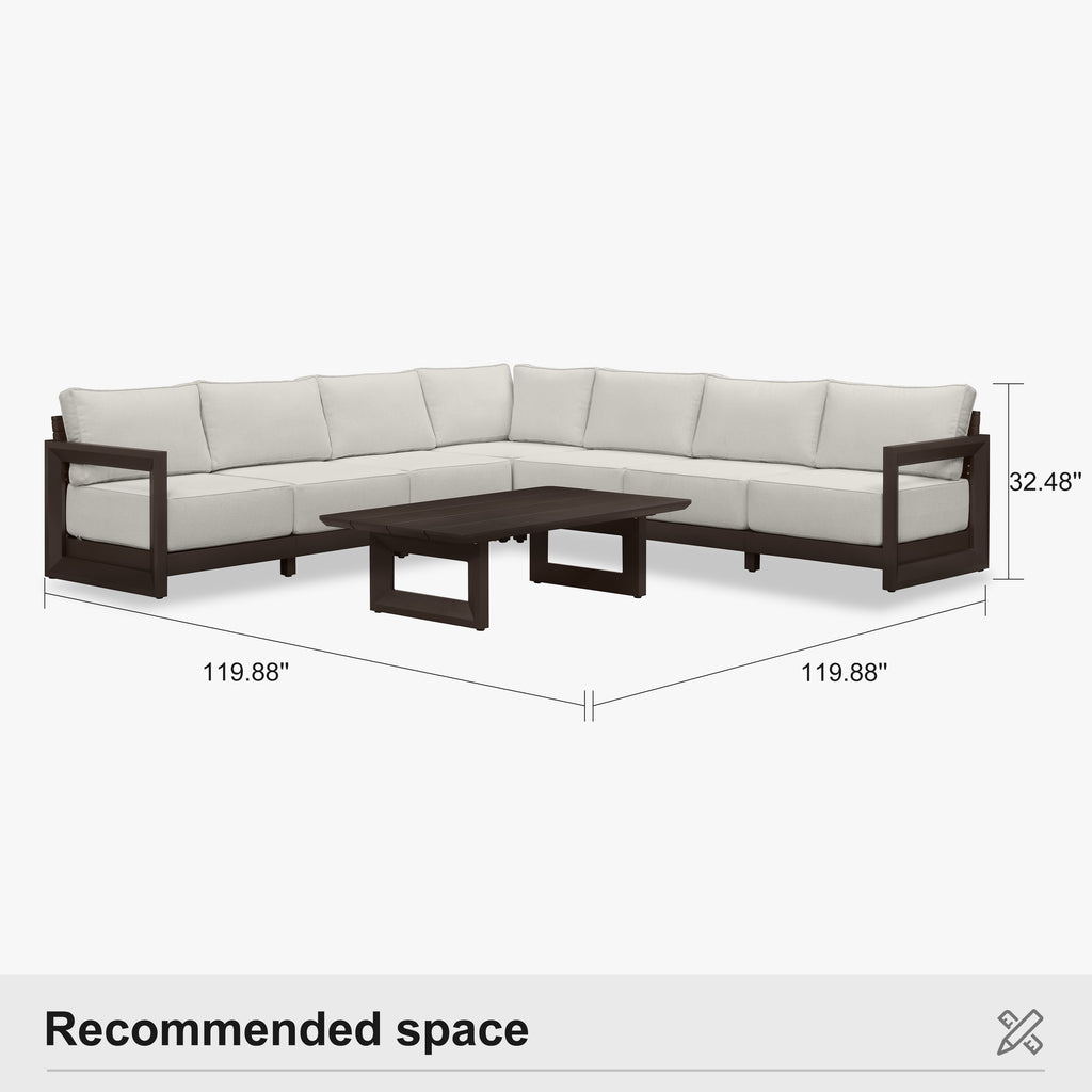 PURPLE LEAF Caesar L-shaped Patio Conversation Set with Bronze Cushion Pillows and Ottoman Couch for Backyard Porch