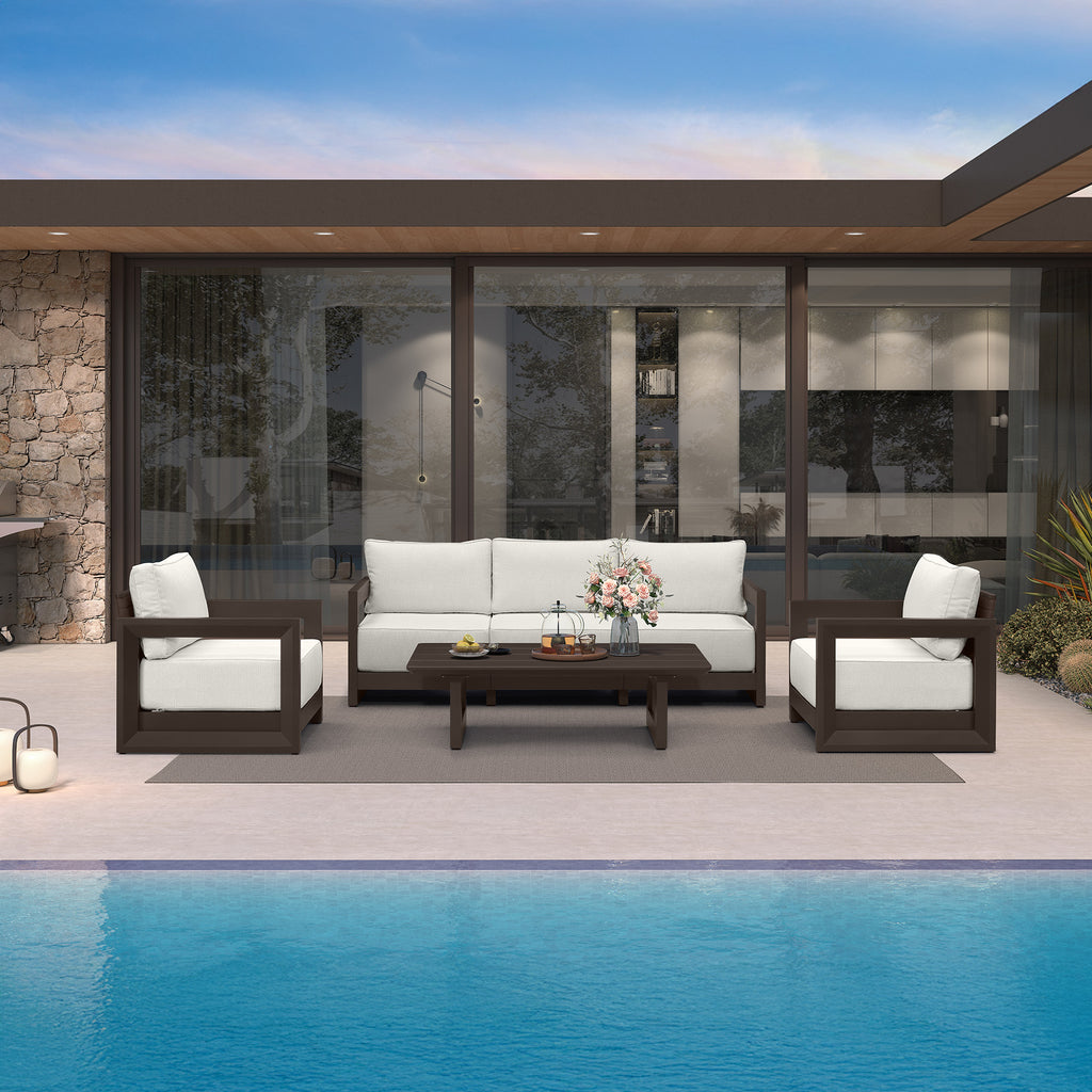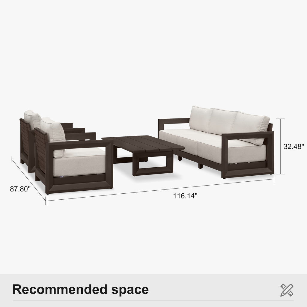 • [ Multifunctional Sofa Set ] This outdoor sofa set blends modern aesthetics with comfort, adding a stylish touch to your patio. Perfect for garden relaxation, pool parties, or patio relaxation.