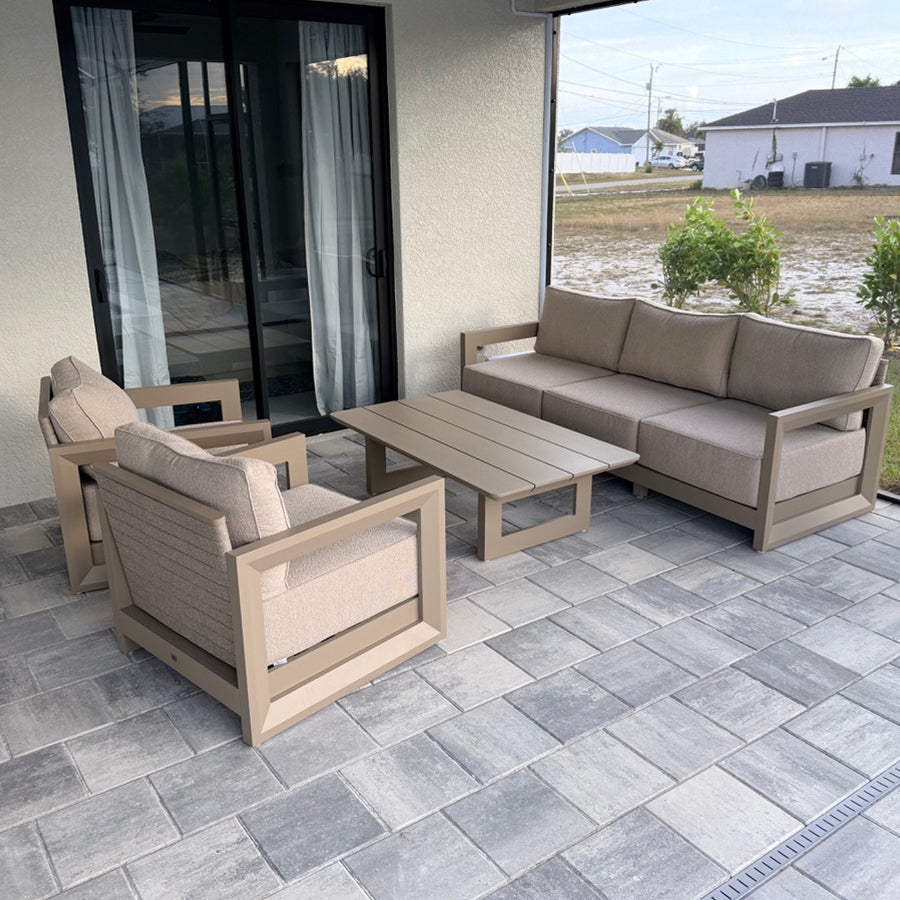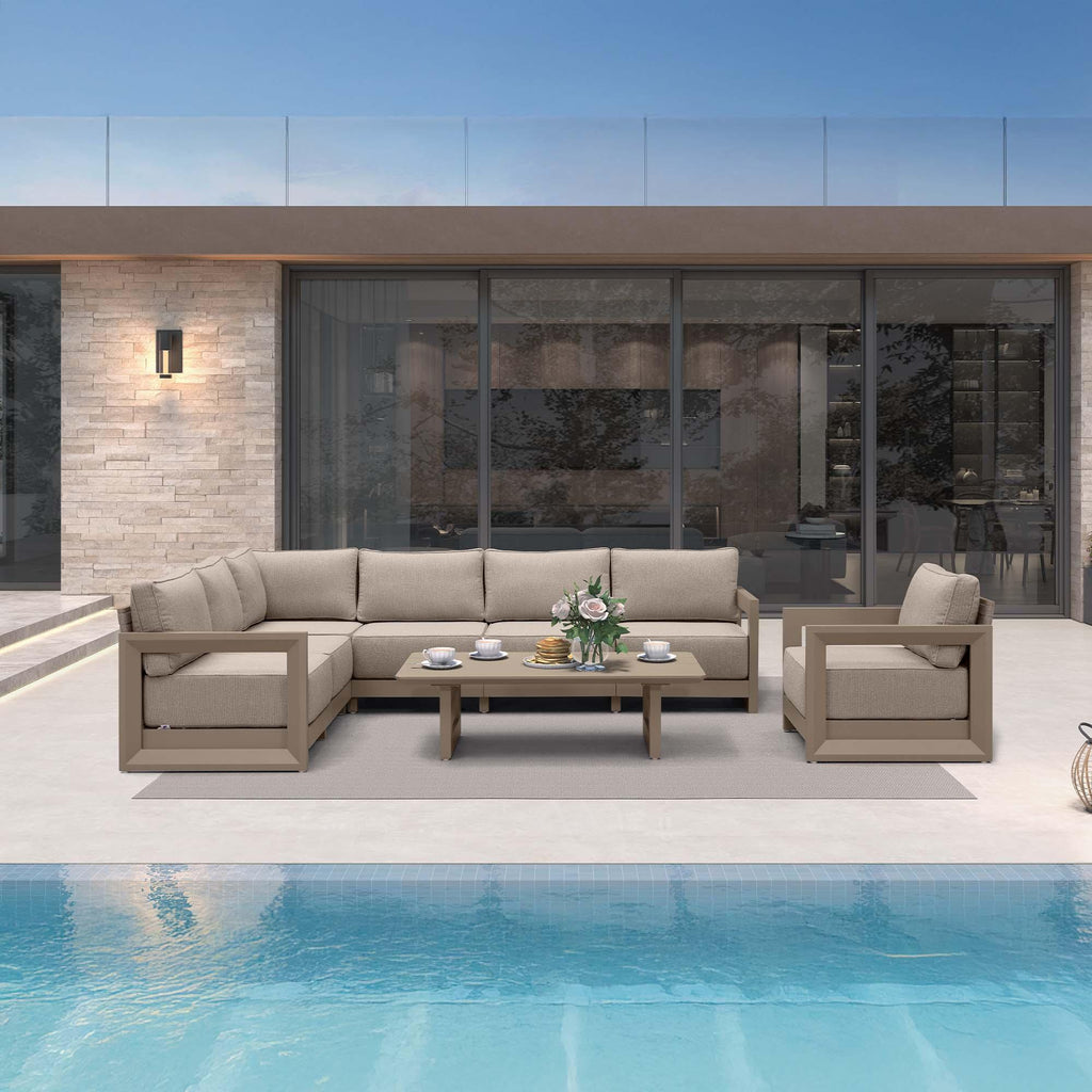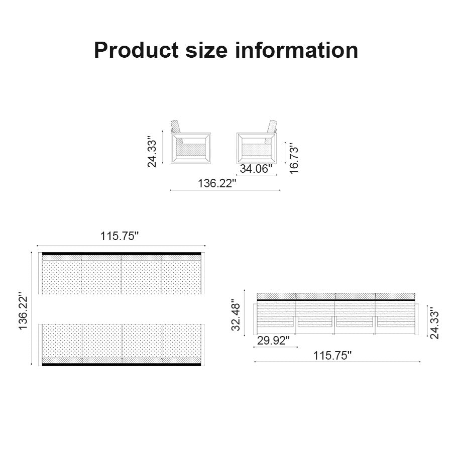 • [ Multifunctional Sofa Set ] This outdoor sofa set blends modern aesthetics with comfort, adding a stylish touch to your patio. Perfect for garden relaxation, pool parties, or patio relaxation.