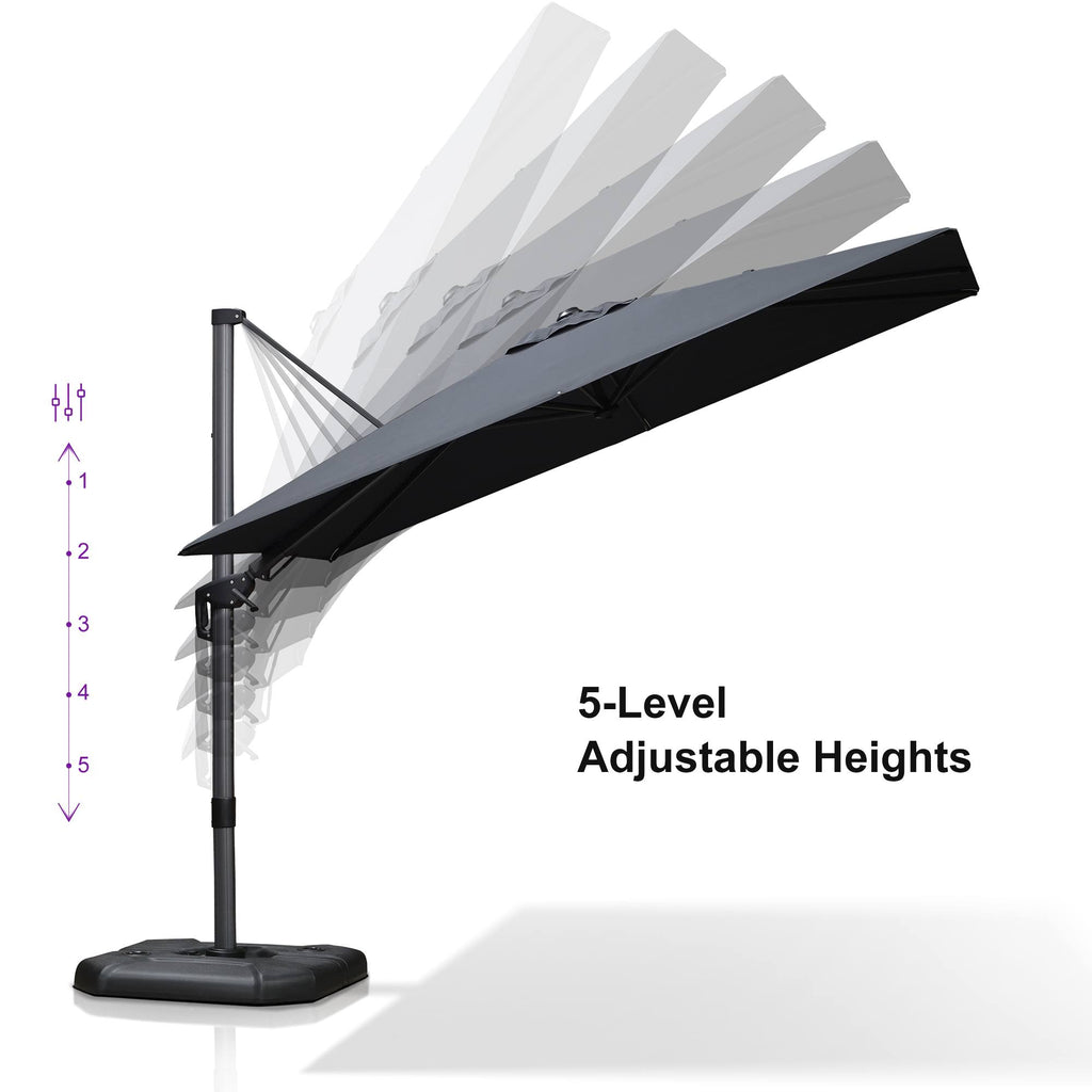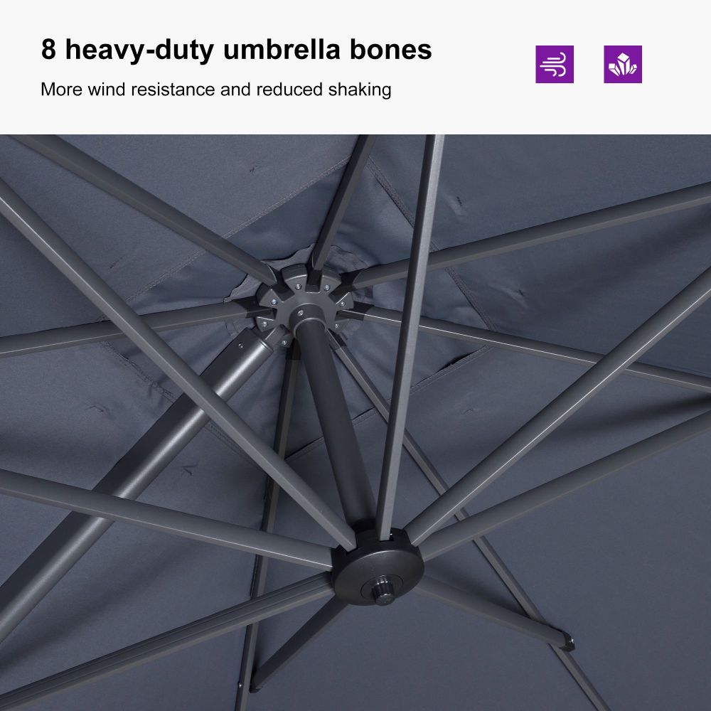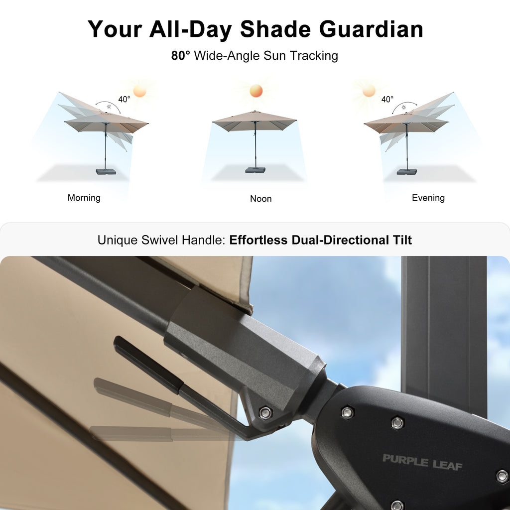 PURPLE LEAF Lateral Tilt Patio Umbrella with Base, 360° Swivel Cantilever Umbrella with Stand
