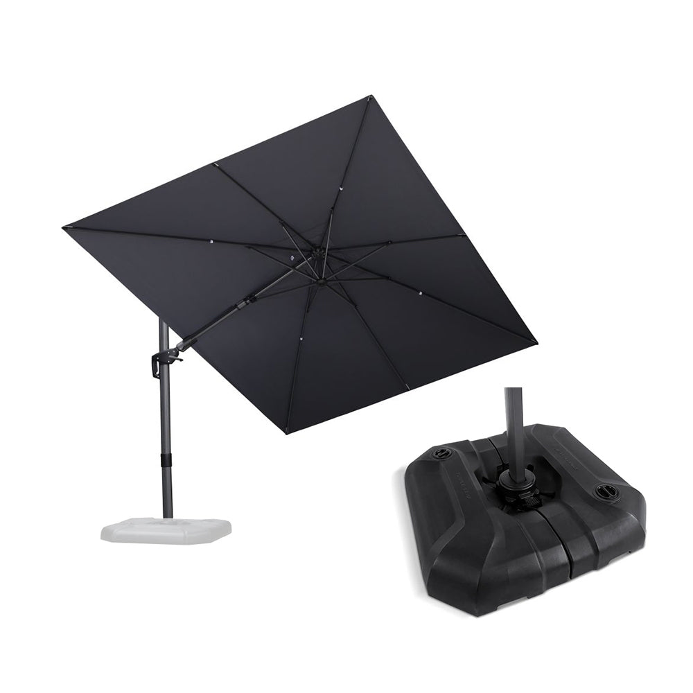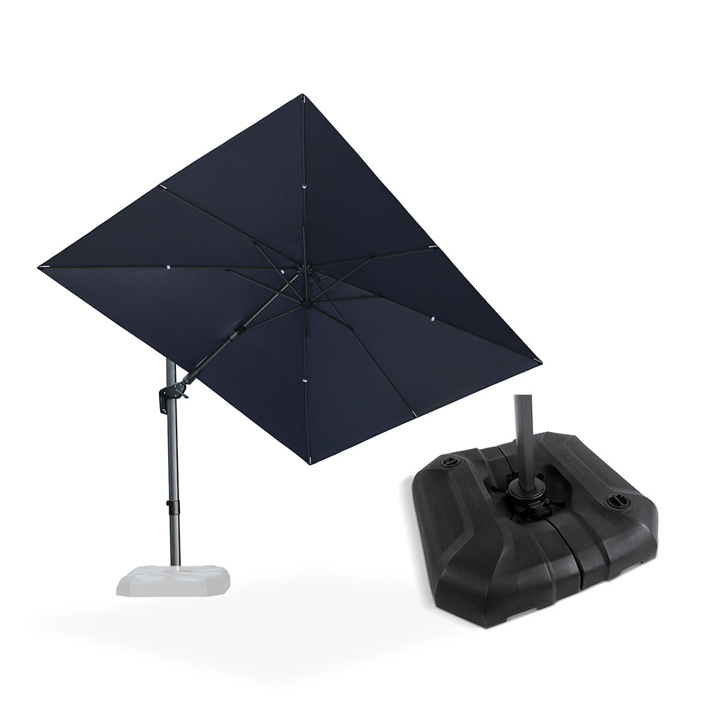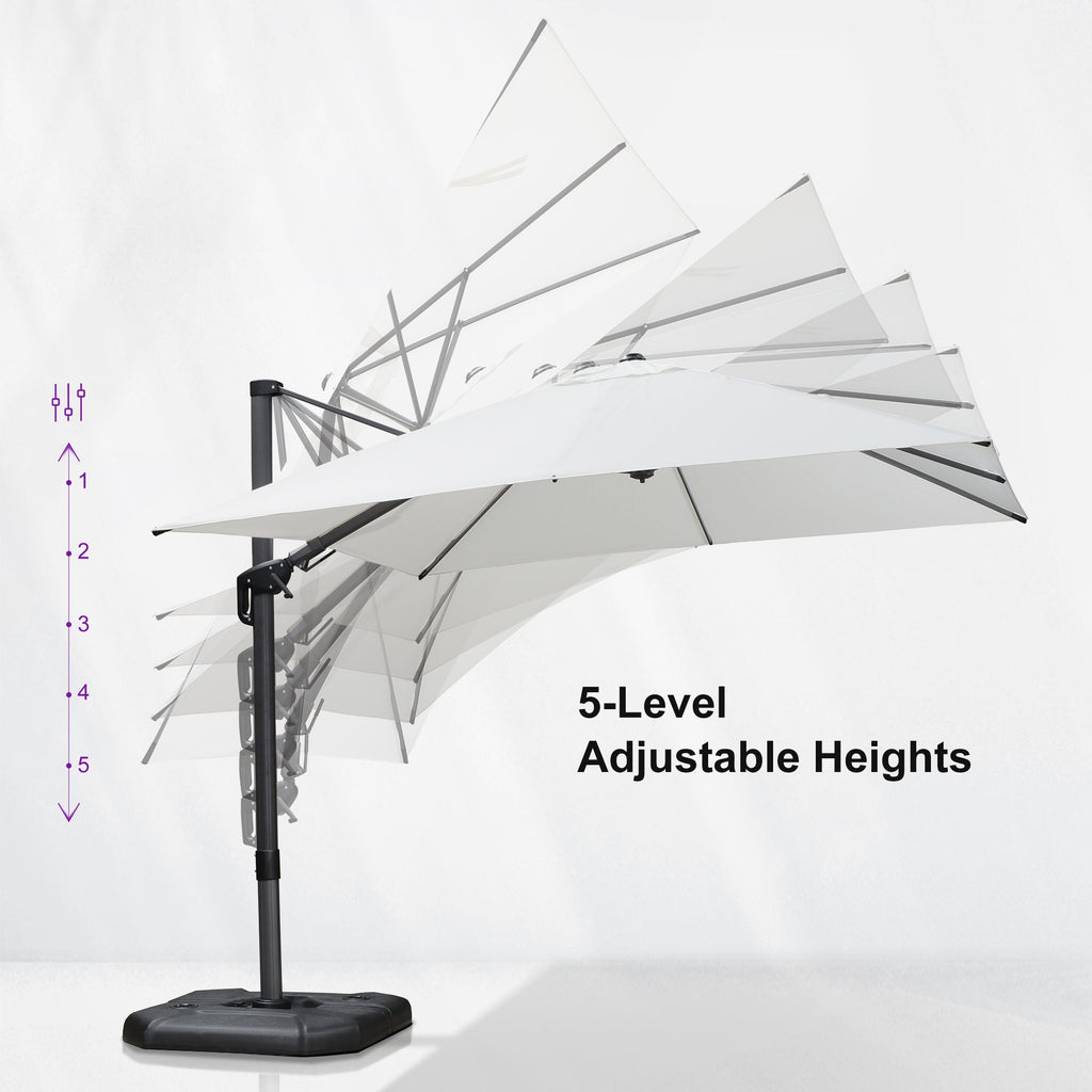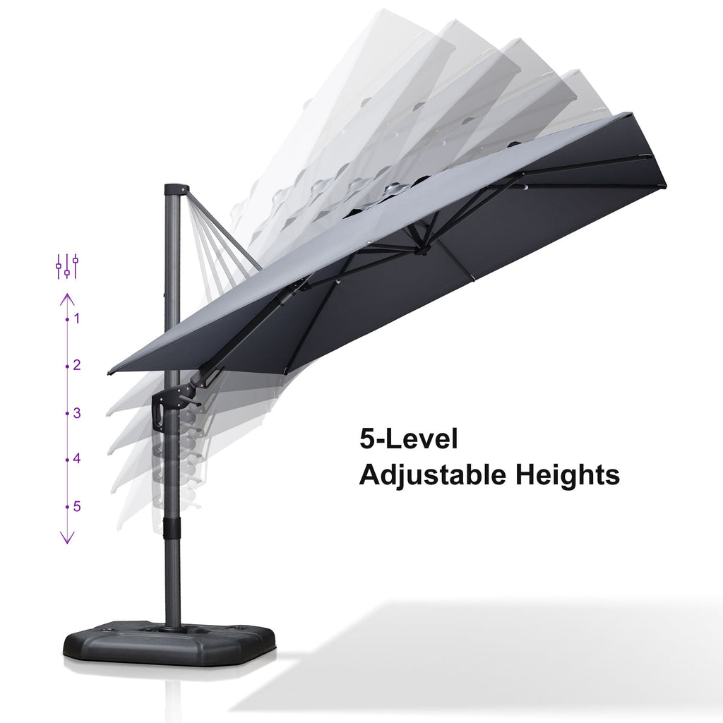 PURPLE LEAF Lateral Tilt Patio Umbrella with Base, 360° Swivel Cantilever Umbrella with Stand