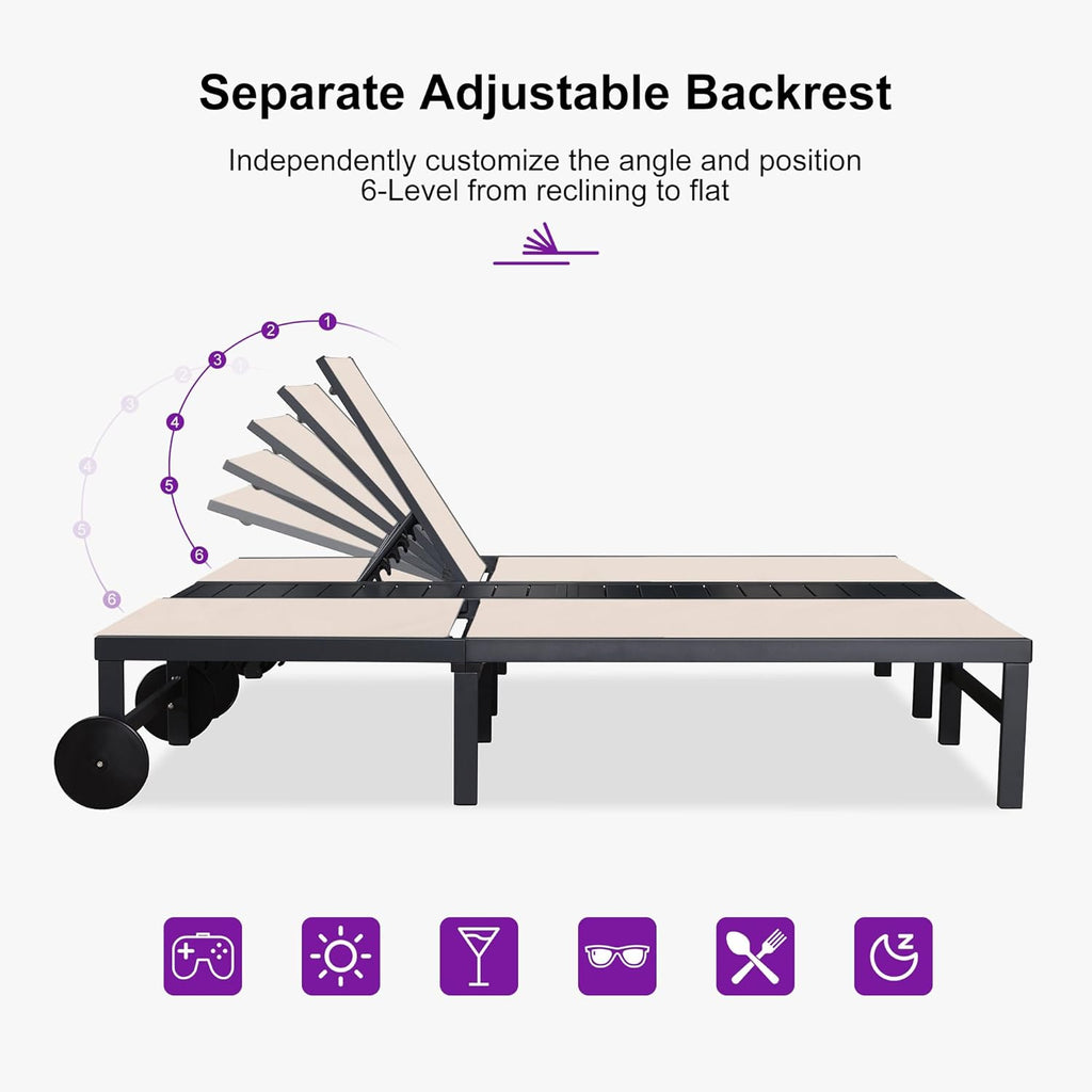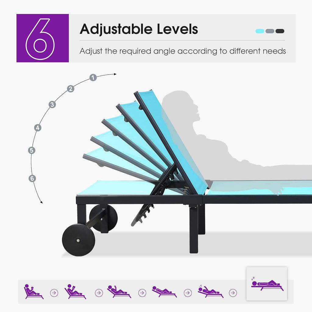 PURPLE LEAF Outdoor Chaise Lounge Chairs Set Recliner Aluminum Adjustable Chair with Wheels and Table for Poolside Beach Patio Reclining Sunbathing Lounger