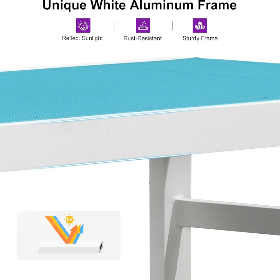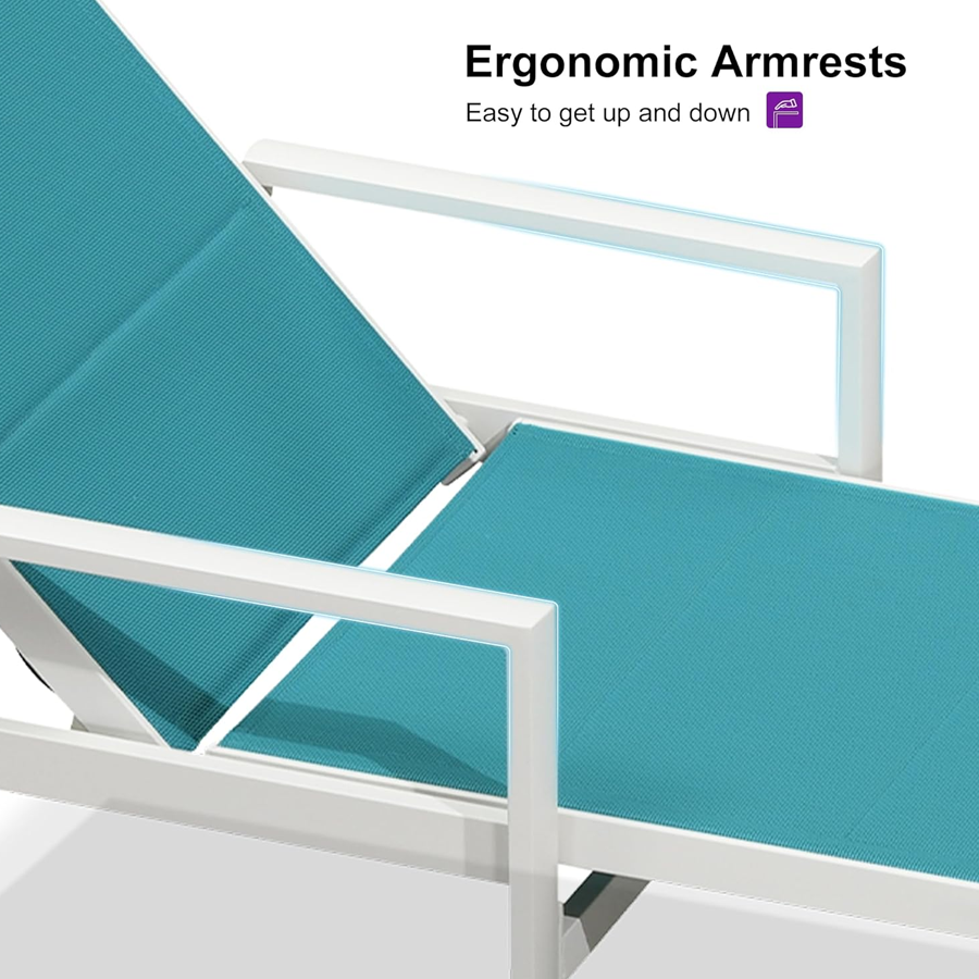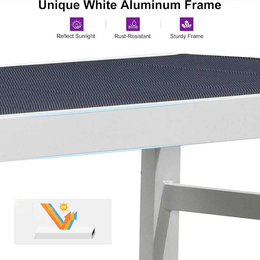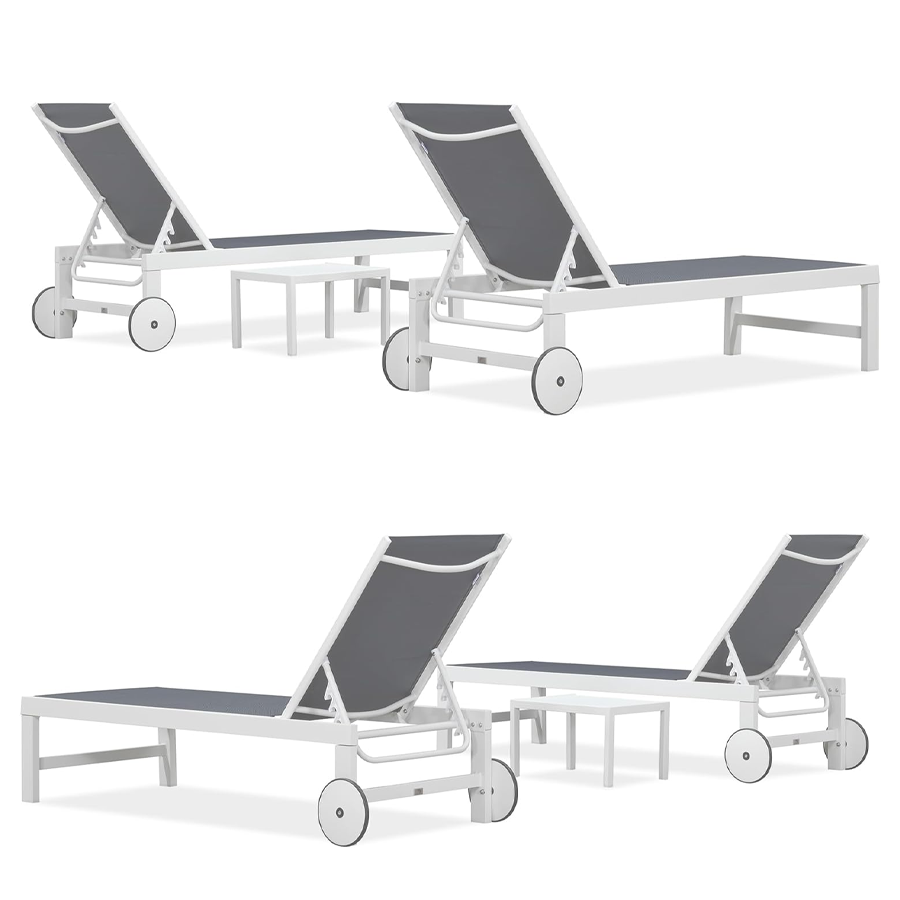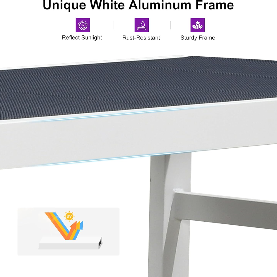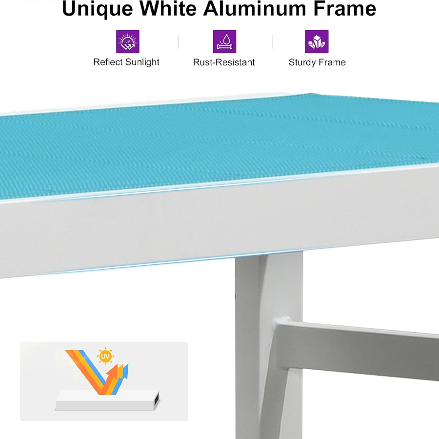 【Durable Frame】Featuring sturdy construction and weather-resistant powder-coated finish. This Patio lounge chair set is crafted with high-quality aluminum material, durable to use.