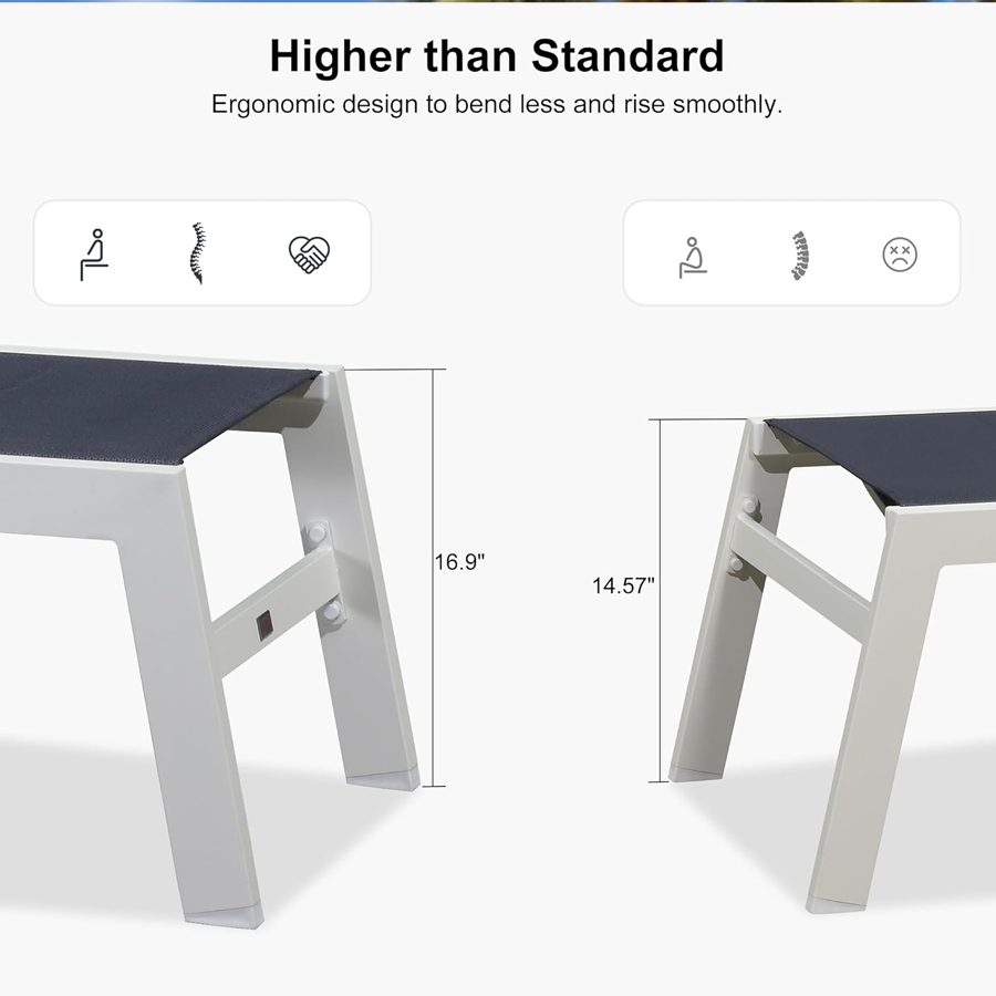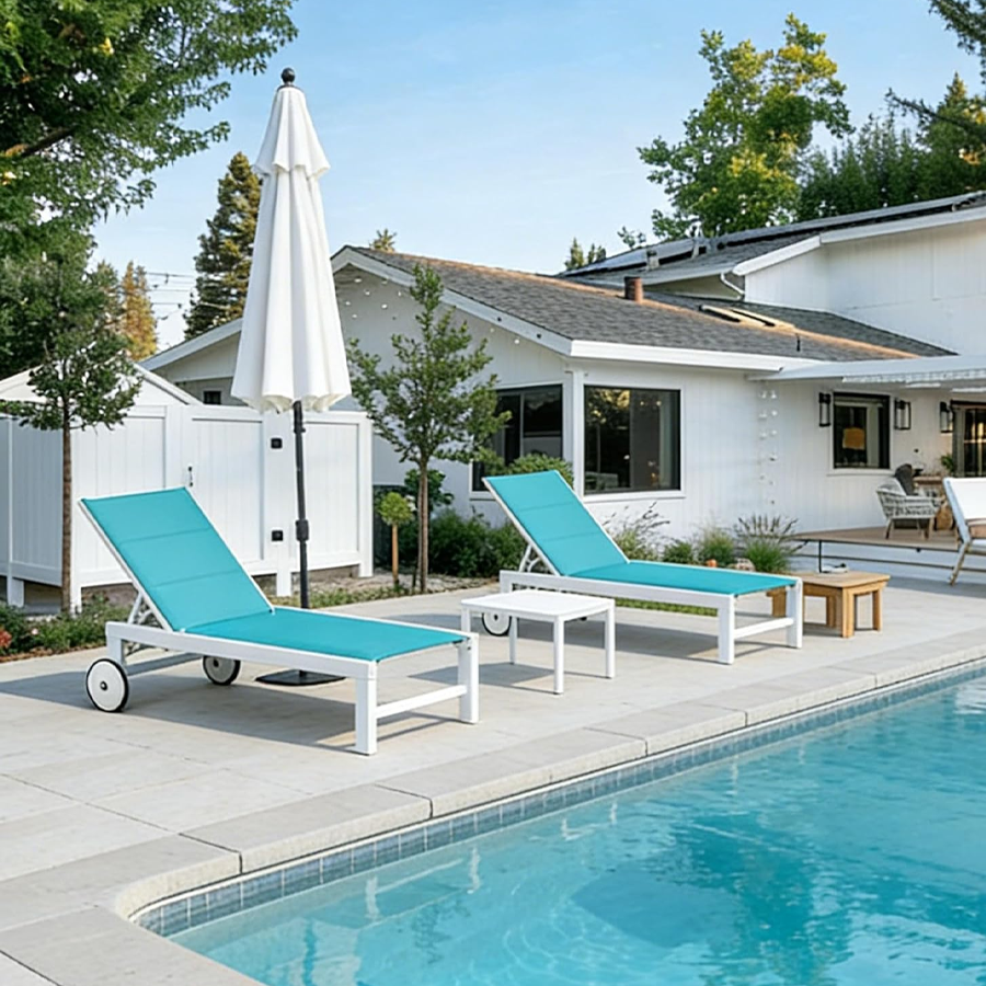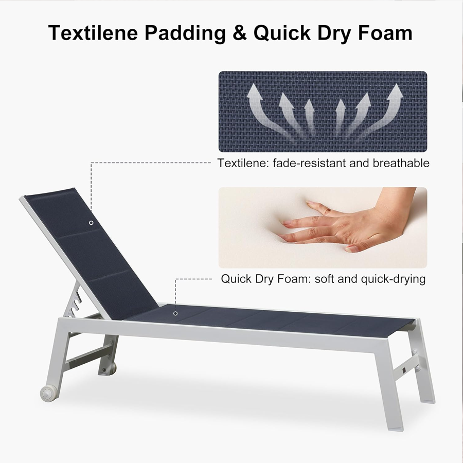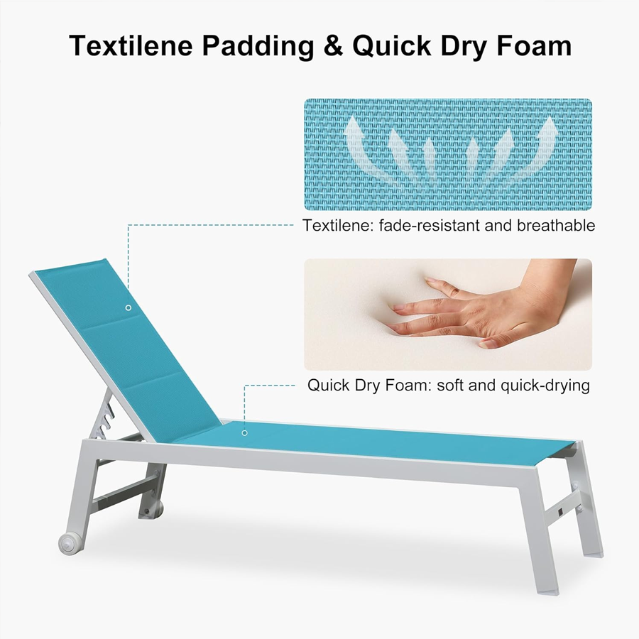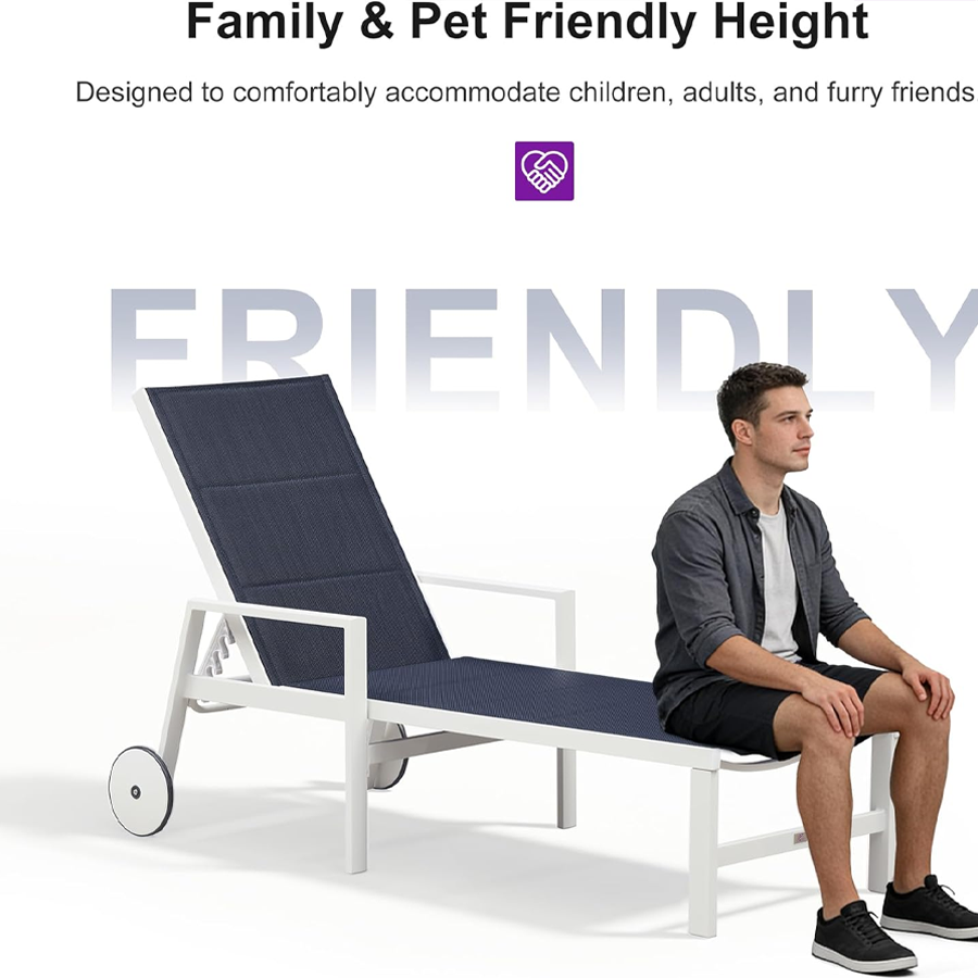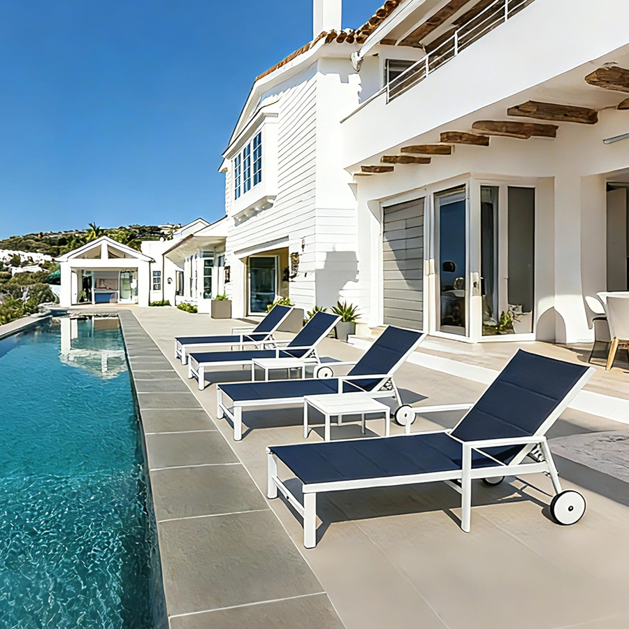 【Durable Frame】Featuring sturdy construction and weather-resistant powder-coated finish. This Patio lounge chair set is crafted with high-quality aluminum material, durable to use.