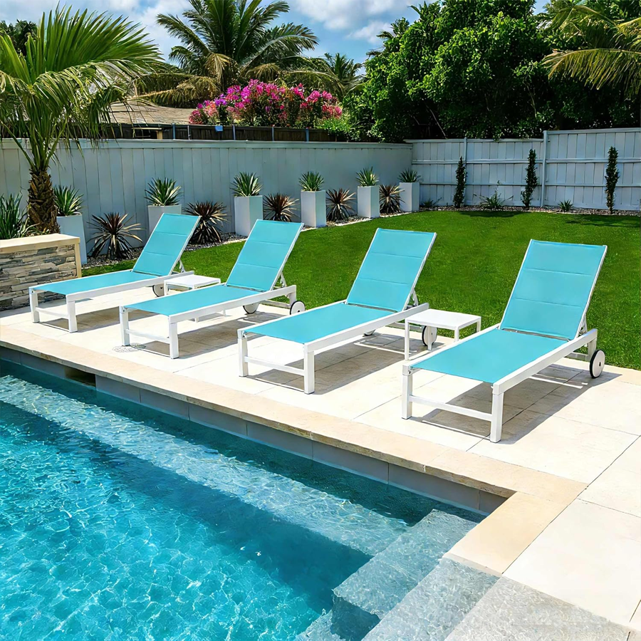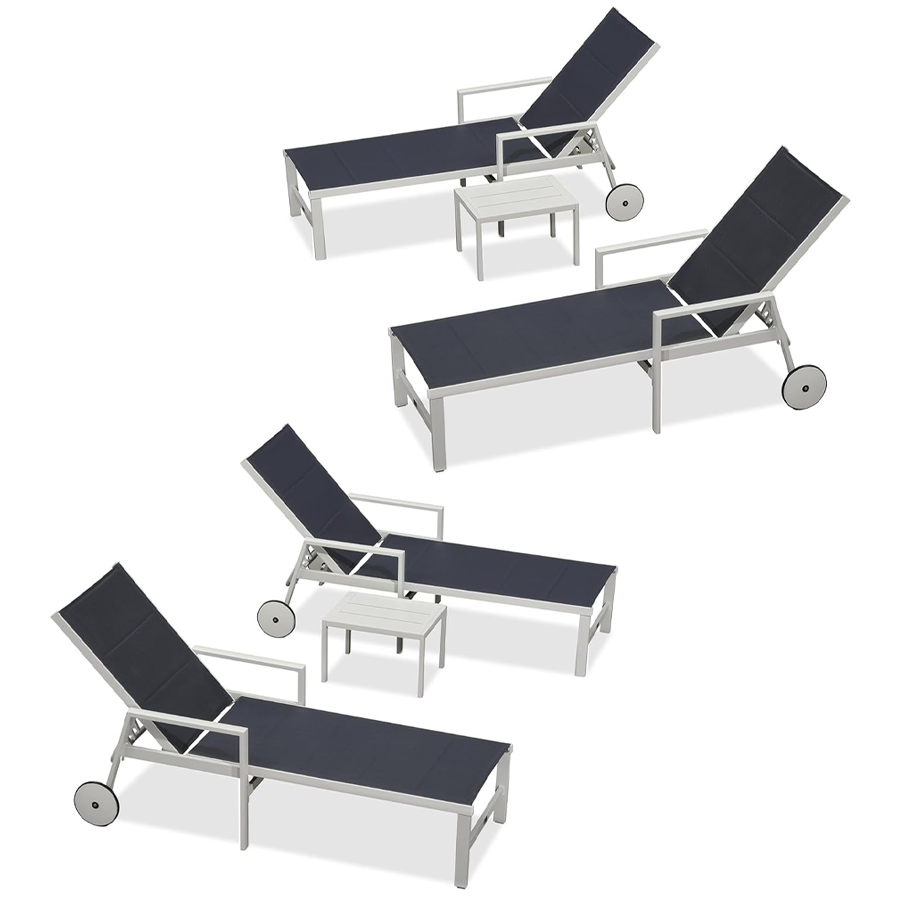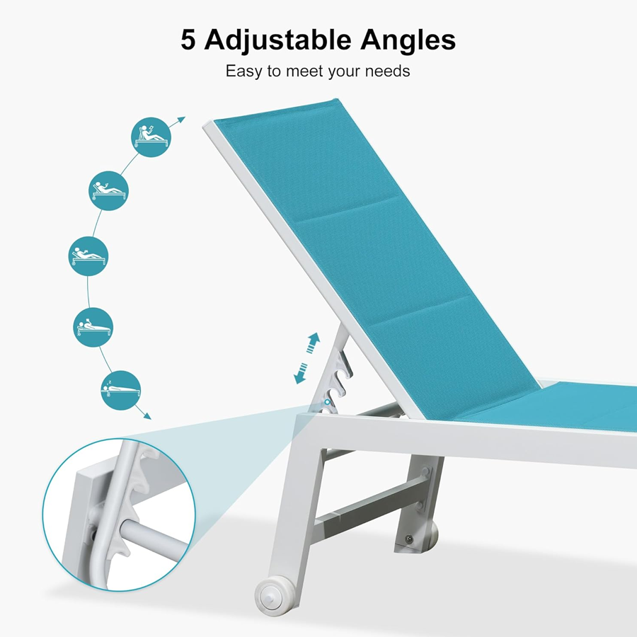 PURPLE LEAF Outdoor Chaise Lounge Set Adjustable Sunbathing Recliner with Side Table for Beach Poolside Patio Outside Aluminum Chaise Lounger