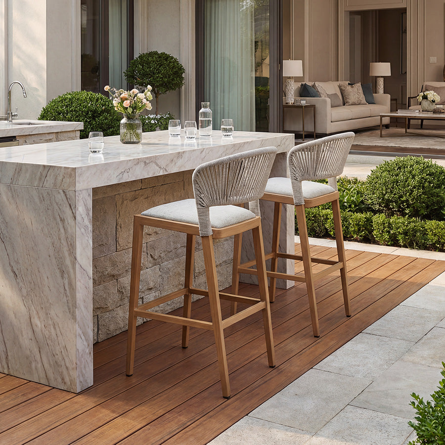 PURPLE LEAF Outdoor Bar Stools Set of 2, All-Weather Rope Wicker Aluminum Patio Bar Chairs for Deck, Balcony, Garden, Kitchen Island