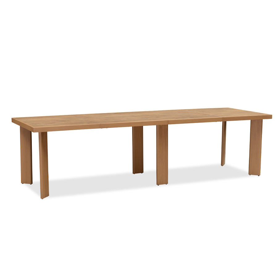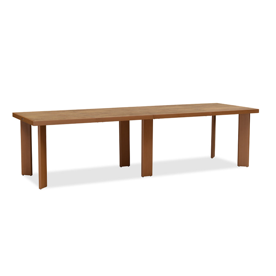 [ Aluminum Frame ] Finished with teak powder coating, this patio table set not only provides a stylish look but also features rust resistance and is solid enough to withstand all weather for years of use.