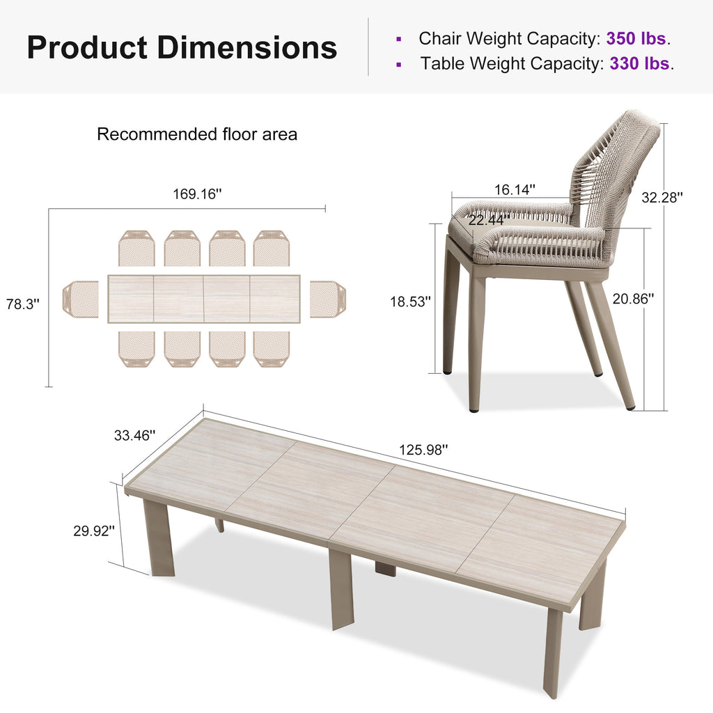 [ Sturdy Structure ] Constructed with a premium rust resistant powder coated aluminum frame. The dining set features thick table legs and triangular tube structured dining chairs, ensuring stability and durability.