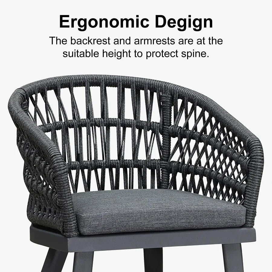 [ PE Rattan Backrest ] The chairs are thoughtfully designed with a PE rattan backrest, providing both style and durability. This intricate weaving technique not only adds visual appeal but also ensures long-lasting performance.