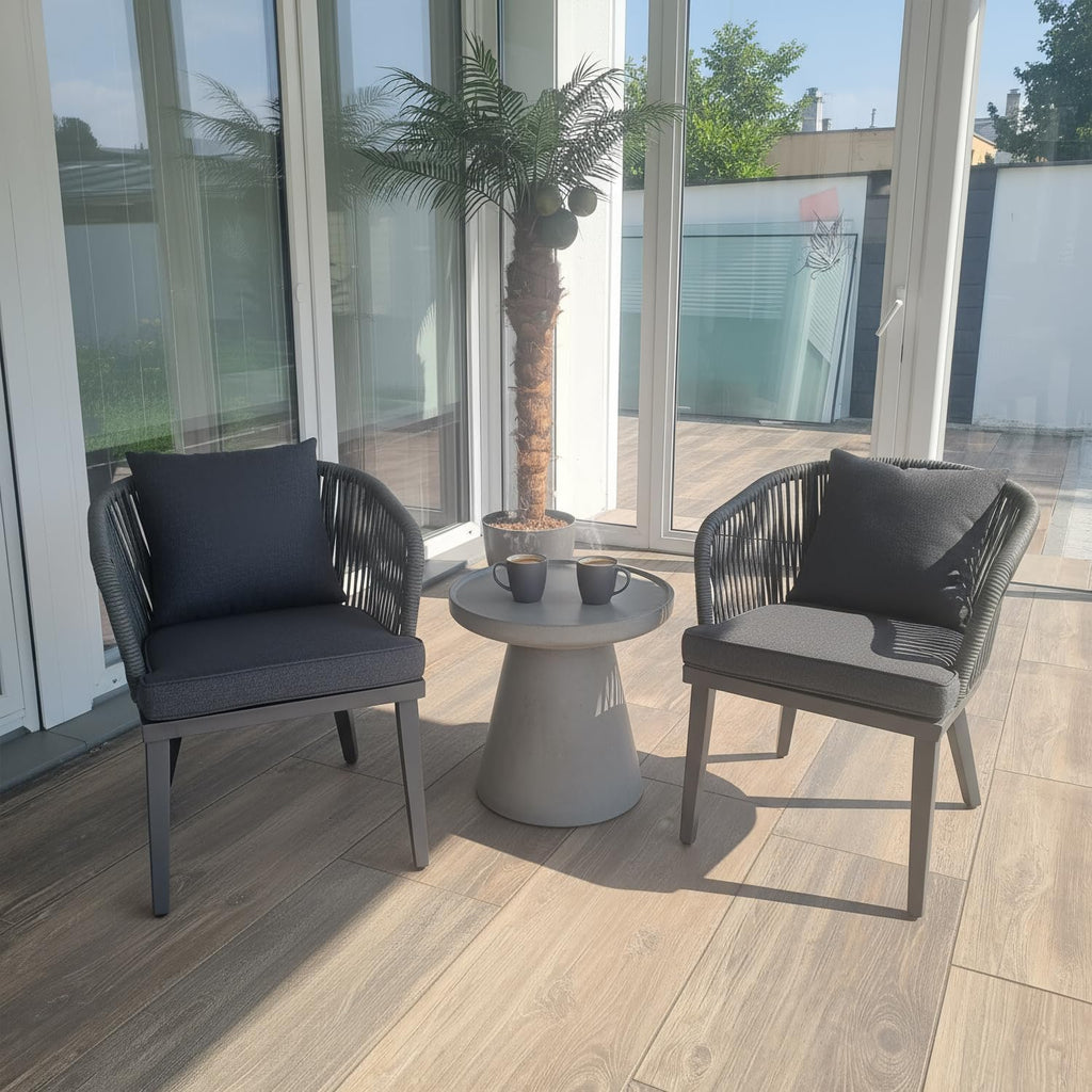 [ Sturdy Aluminum Frame ] Made of strong and well-welded aluminum frame, and finished with a solid powder coating with an wood grain pattern, that makes the chairs both durable, beautiful and practical.