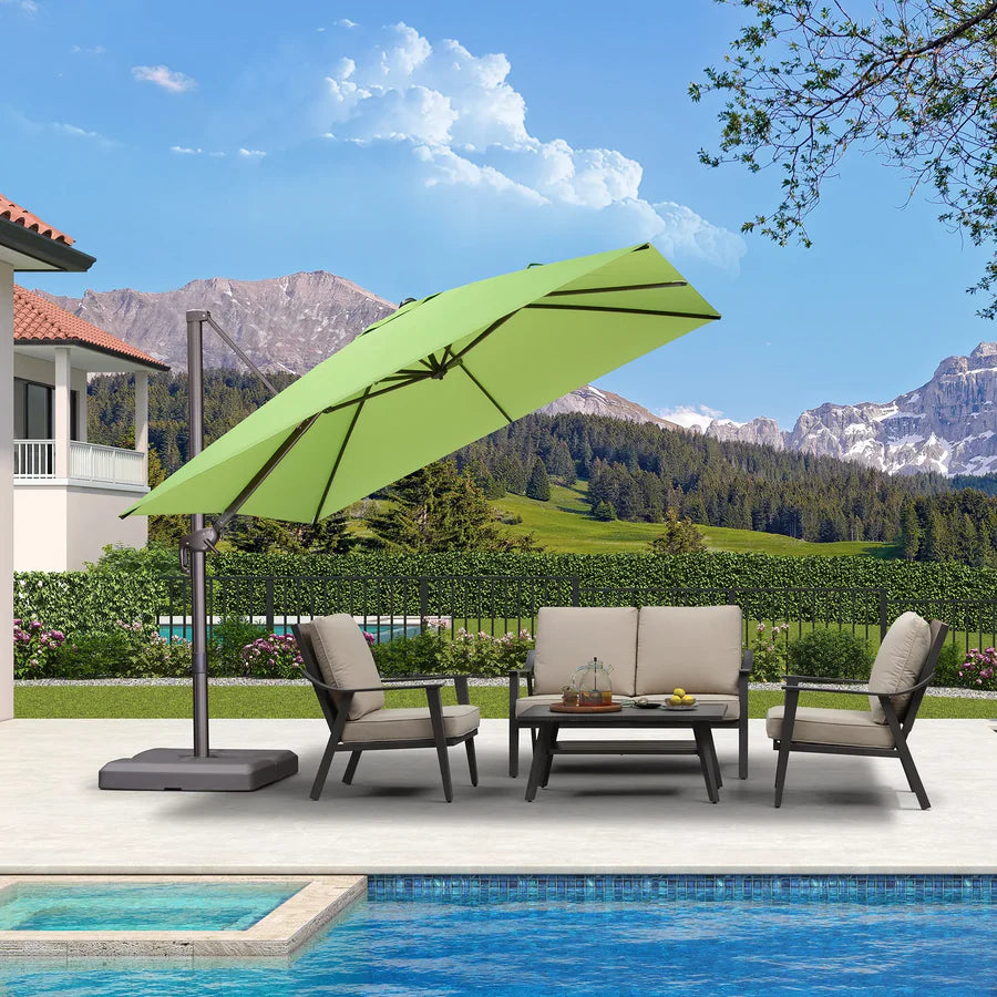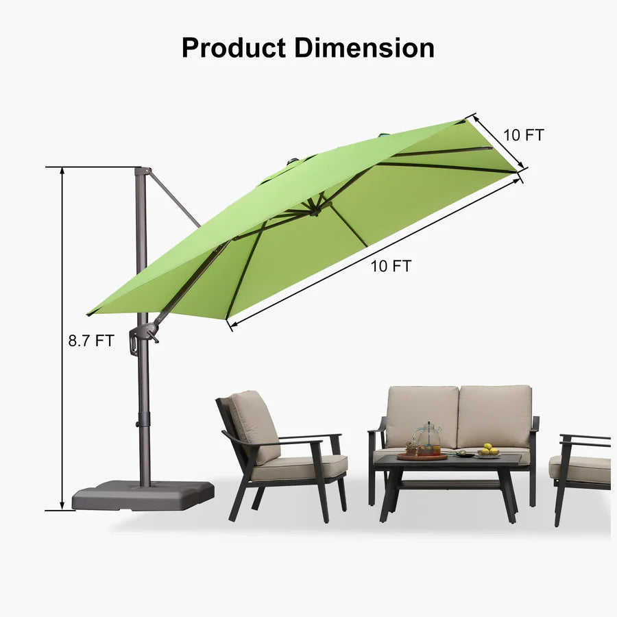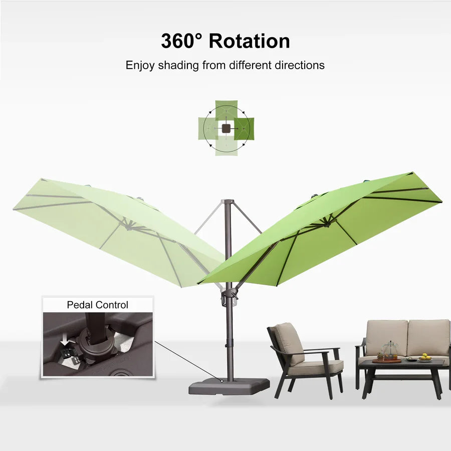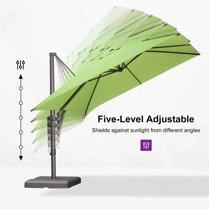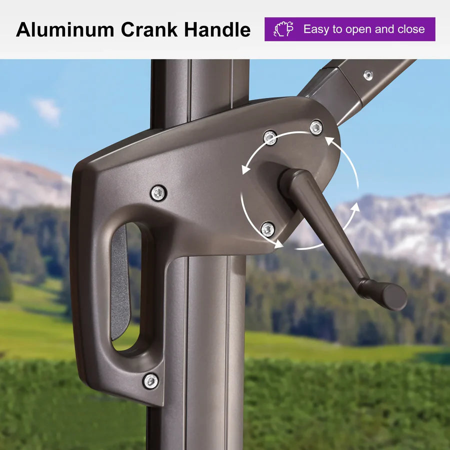 The PURPLE LEAF Cantilever Umbrella combines style and practicality for outdoor spaces. Its cantilever aluminum frame and 360-degree rotation let you angle shade exactly where needed, perfect for poolside lounging or backyard dining.