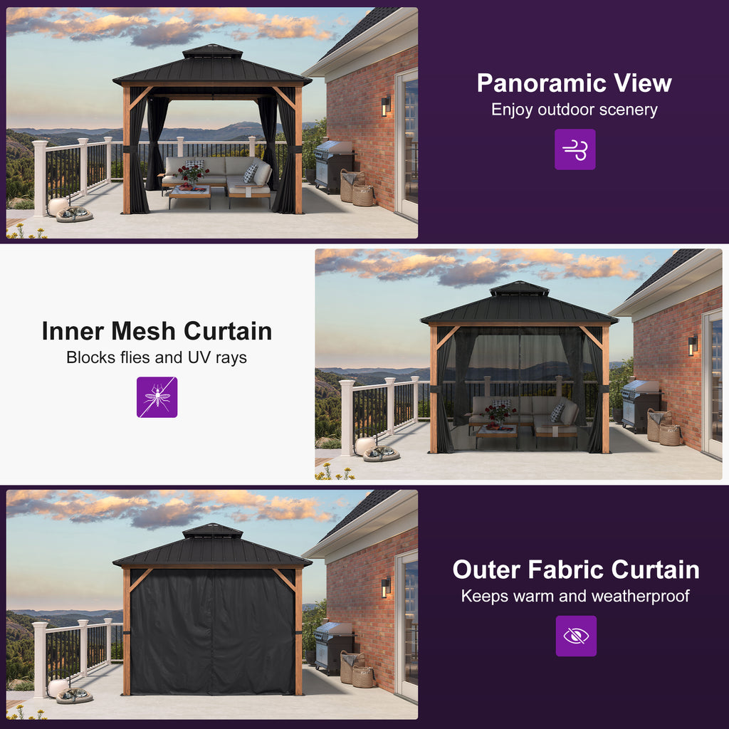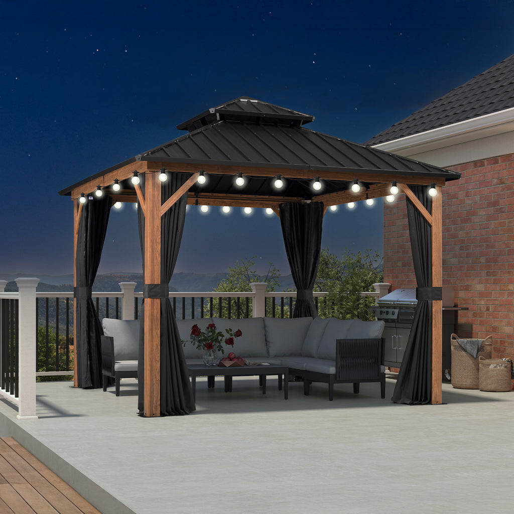 - [ Natural Wood Exterior ] The columns of this gazebo feature a powder-coated teak finish that perfectly replicates the grain, texture, and color of real wood, creating a naturally beautiful and easy-to-maintain finish.