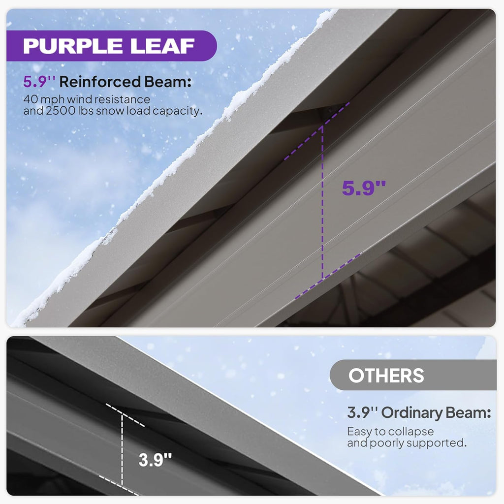 - [ Durable Aluminum Frame ] The sturdy, powder-coated aluminum frame is built to withstand outdoor conditions, providing long-lasting support and stability for your gazebo.