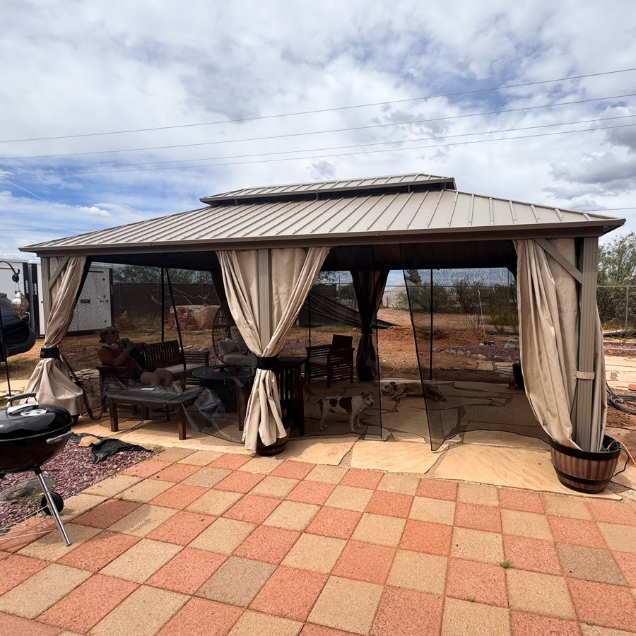 Upgrade your outdoor space with the stylish and budget-friendly Economic Champagne Gazebo. Its elegant champagne finish complements any patio décor, while the double-layer galvanized steel roof provides year-round protection. The rust-resistant aluminum frame offers lasting durability, and the detachable curtains and mesh allow you to customize privacy and airflow. Whether you're hosting gatherings, unwinding in the shade, or enjoying the fresh air, this gazebo brings the perfect balance of sophistication, functionality, and value.