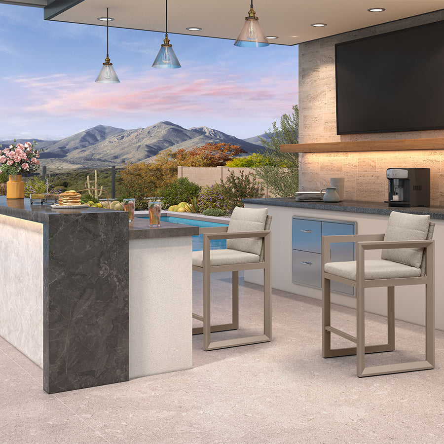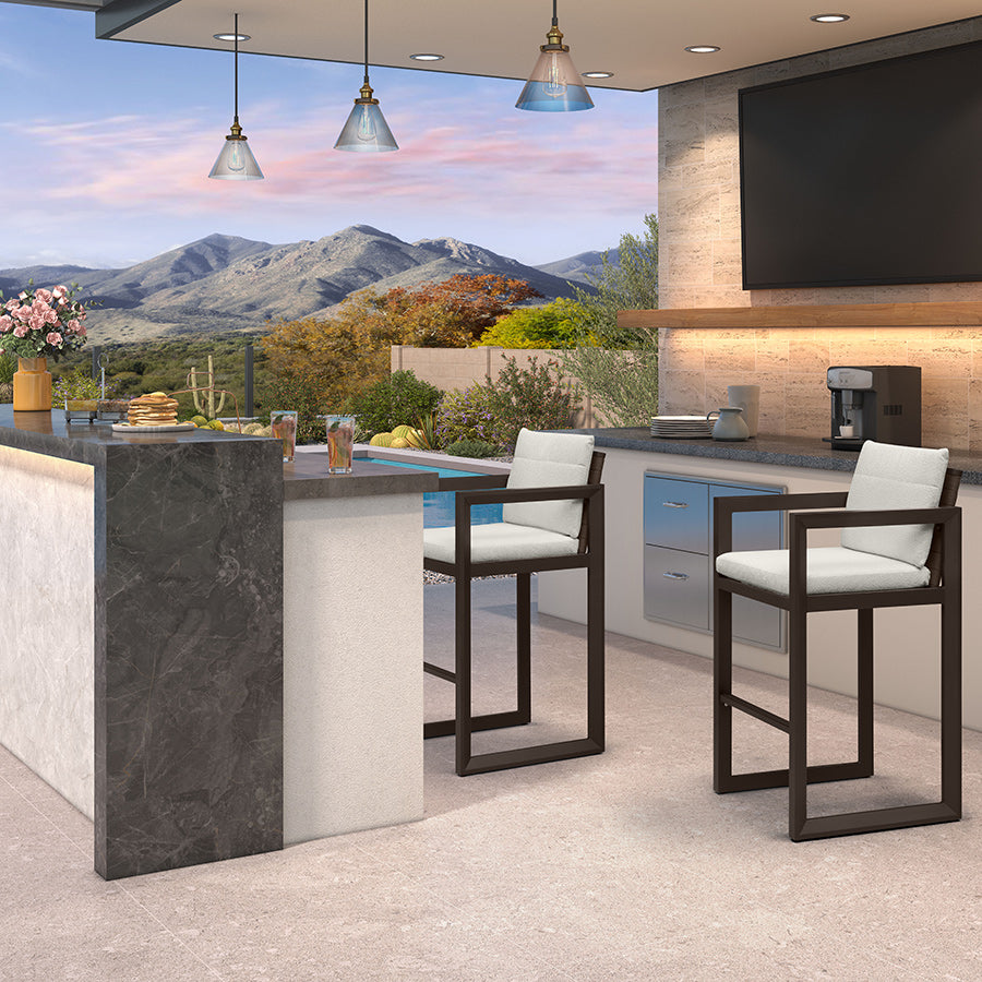 [ Sturdy Structure ] Crafted from weather-resistant aluminum, this bar stool features a wide frame & 330lbs capacity for solid, reliable use.