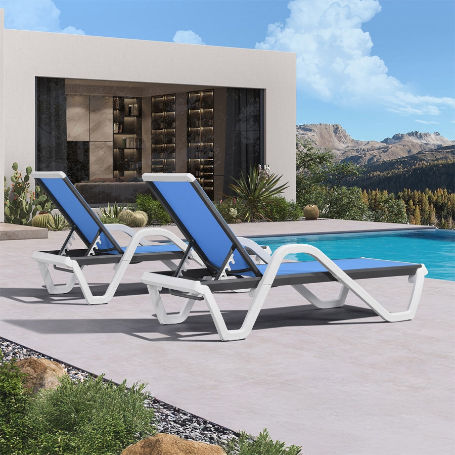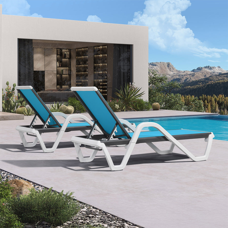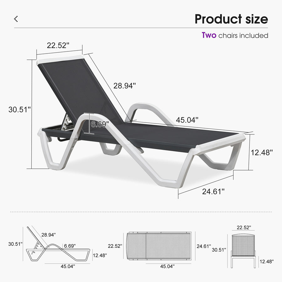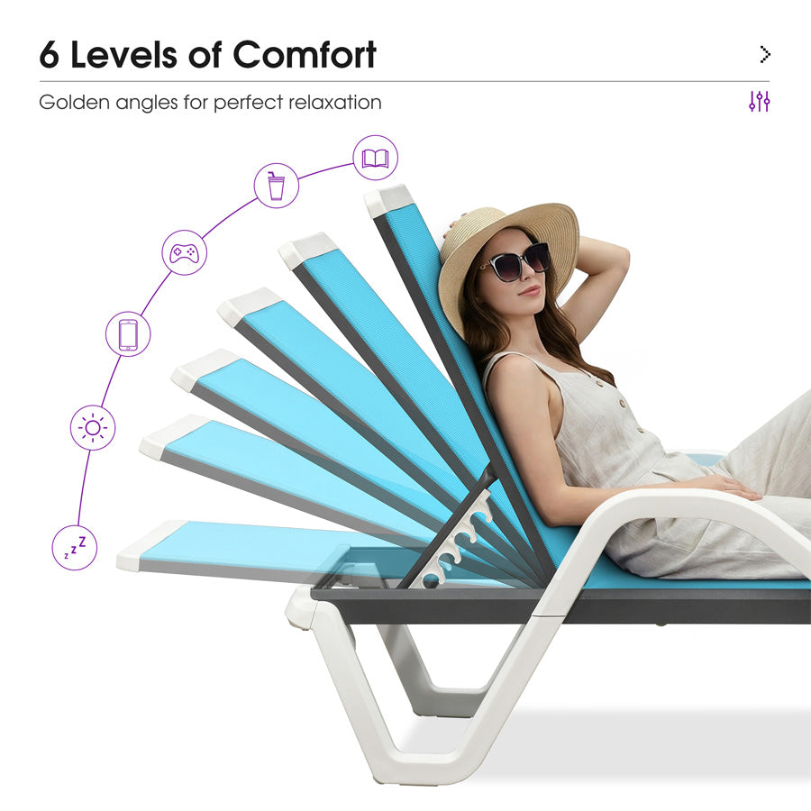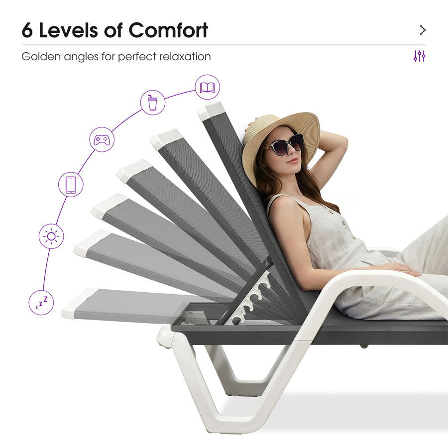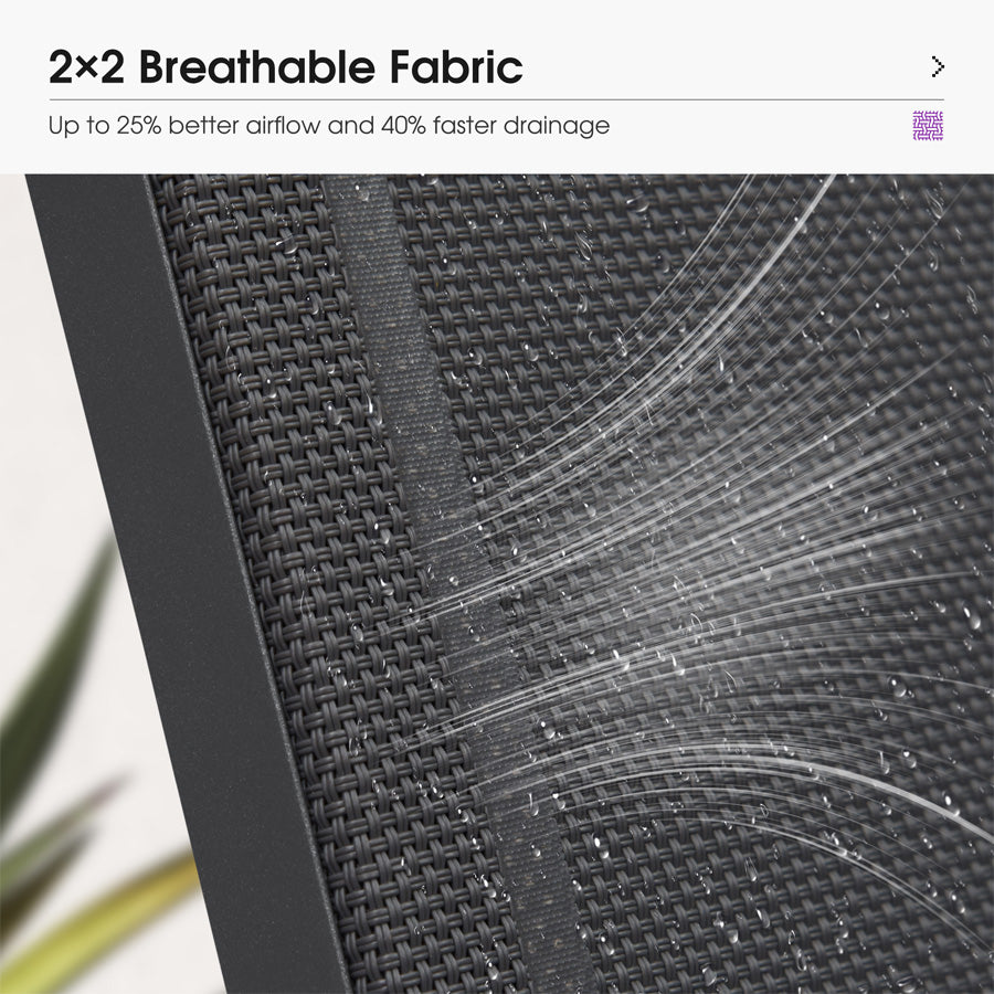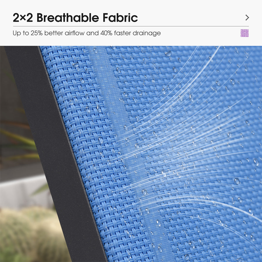 💜2x2 Quick-Dry Weave Fabric: Open-grid breathable fabric prevents sweat buildup. Water drains 2X faster than regular patio chaise lounges. Sun-proof fibers resist fading for 5+ years.
