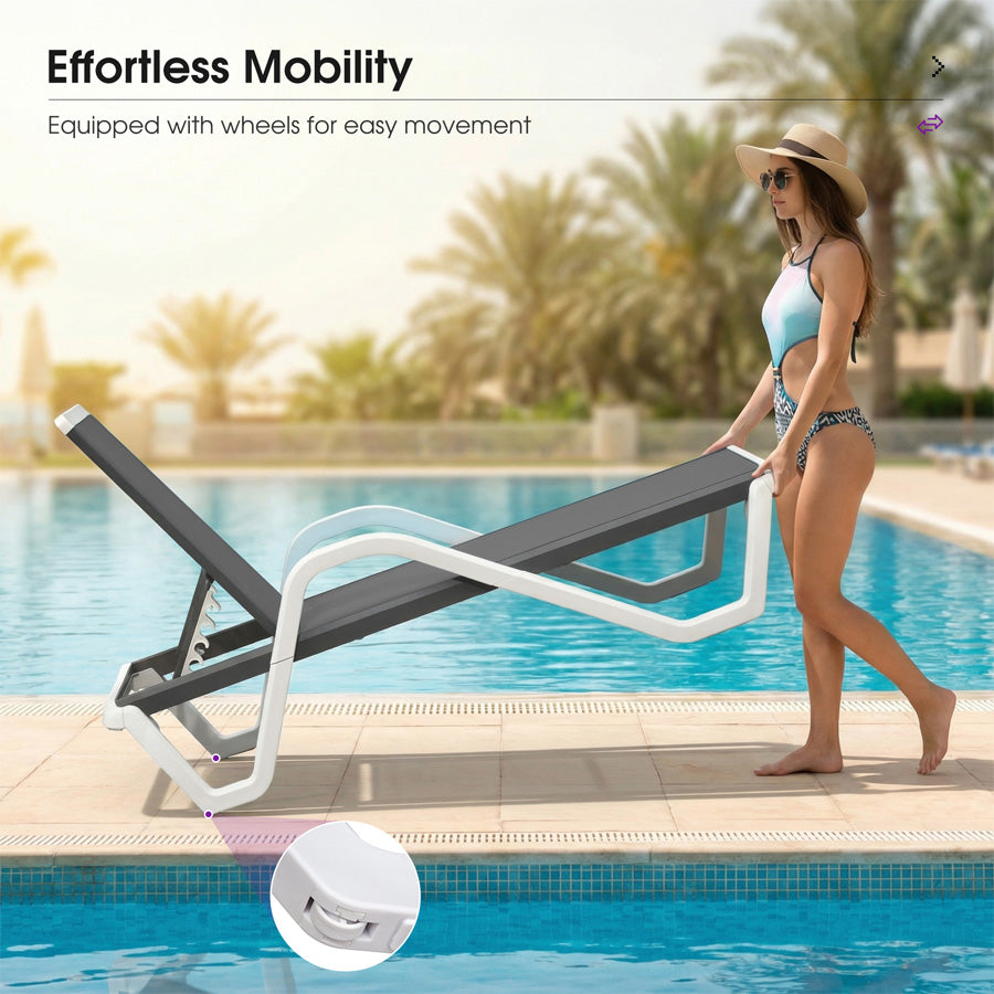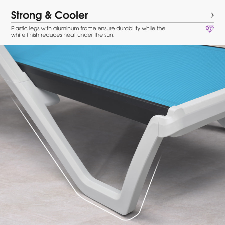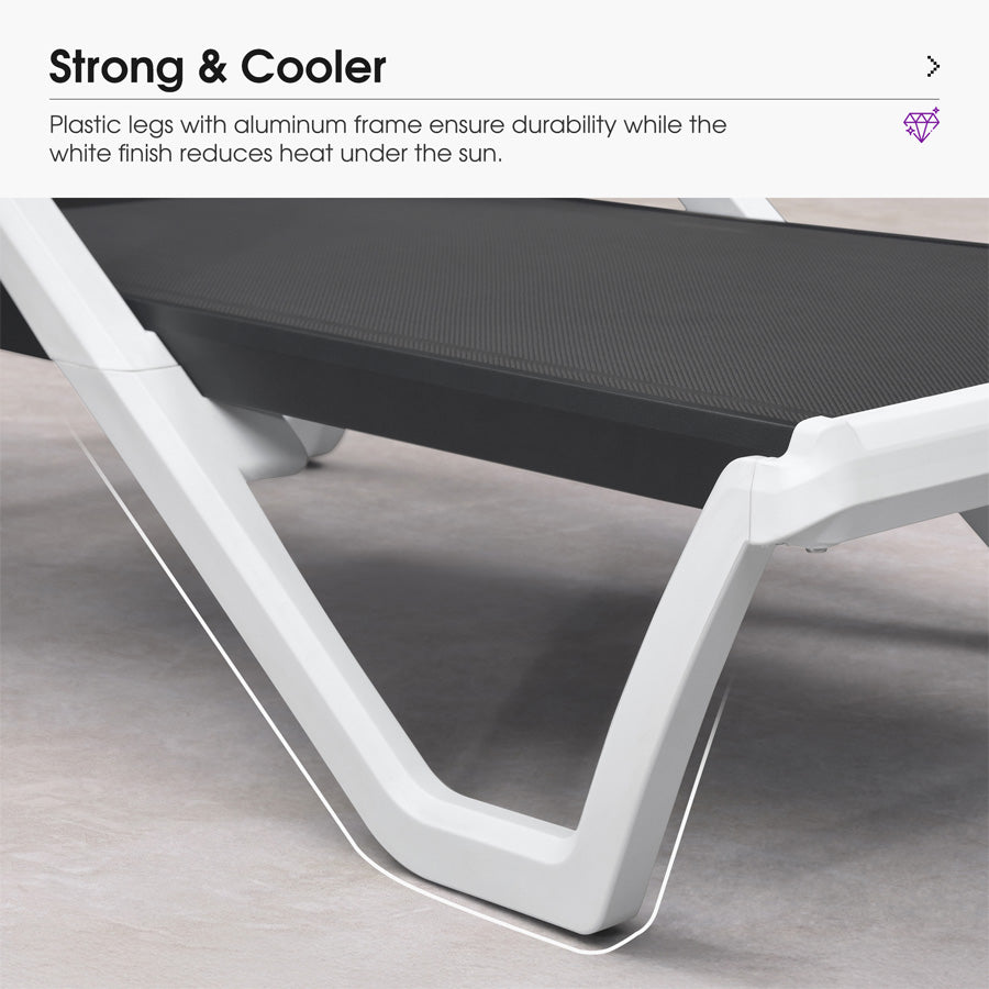 💜350lb Capacity & Aluminum Frame: Aircraft-grade aluminum side frames ensure rock-solid stability for this outdoor chaise lounge. Supports 350lbs – ideal for plus-size users or family-friendly pool decks.
